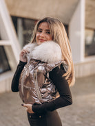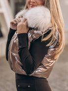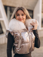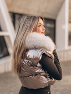 Colete curto bronze com pelo