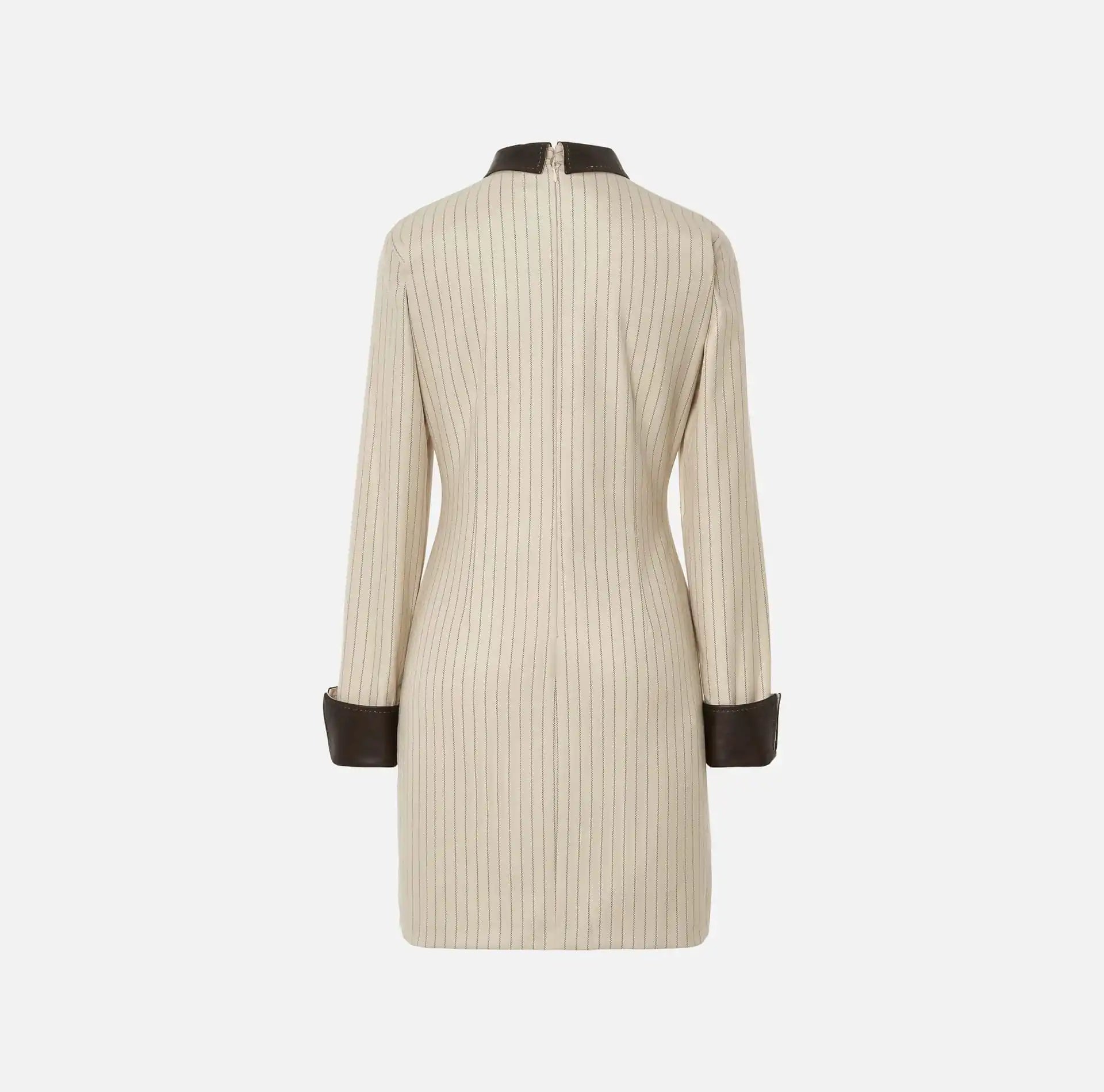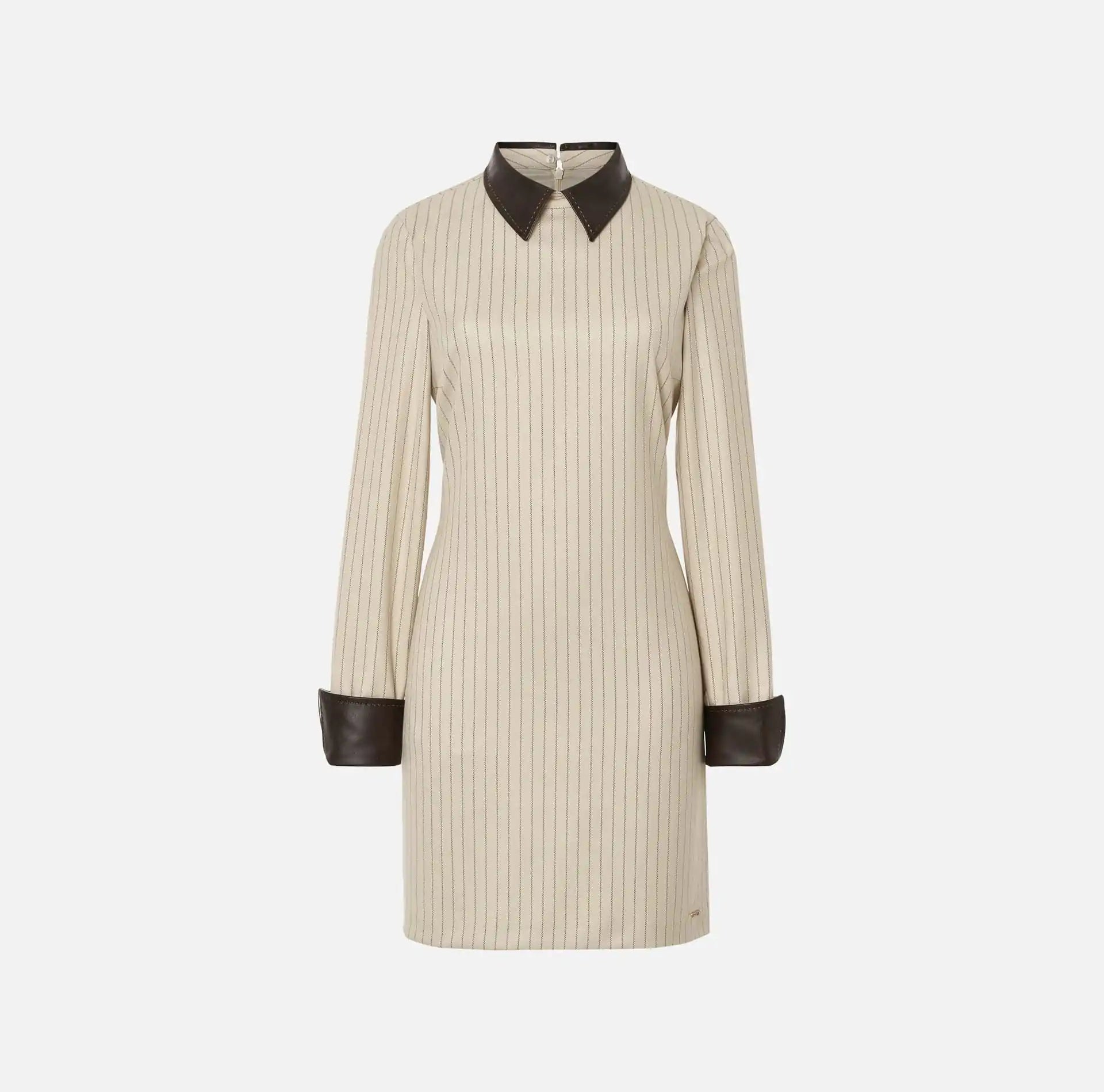 Vestido às riscas com pormenor na gola e mangas