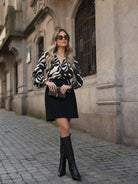 Vestido curto estampado com mangas abalonadas