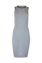 Vestido de malha midi com decote redondo e manga cava.Modelo justo com acabamento em nervuras.