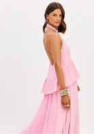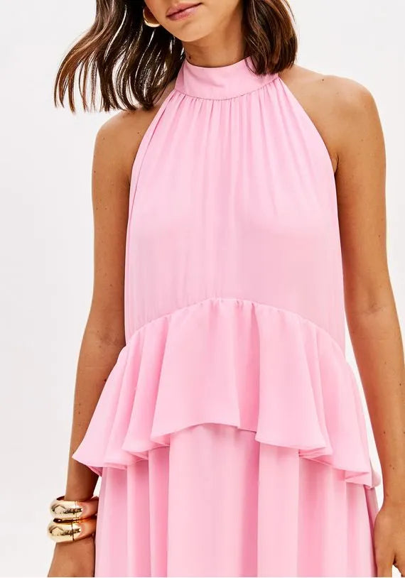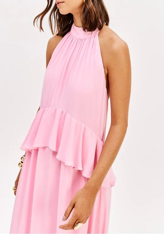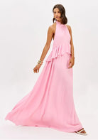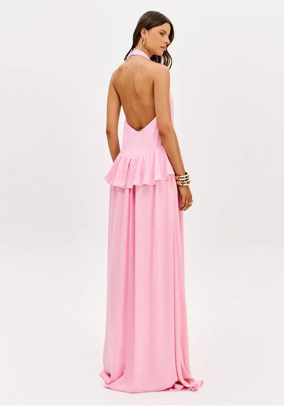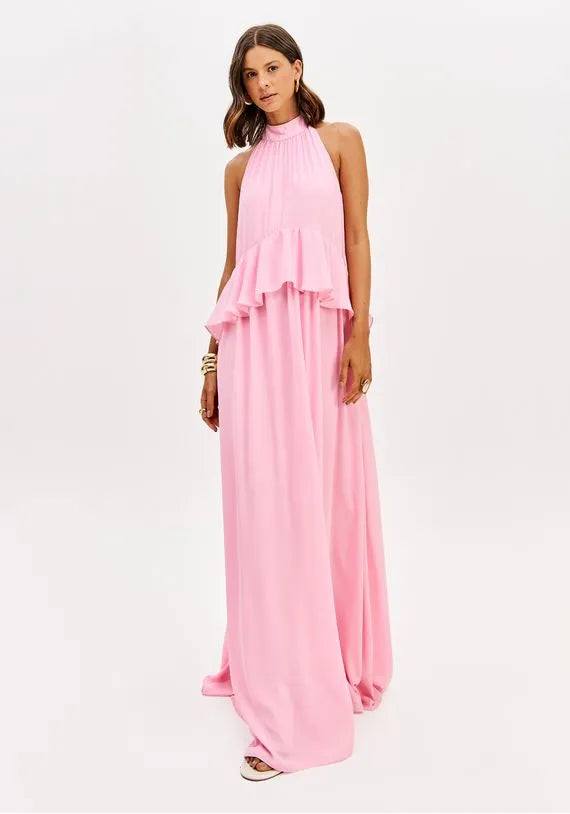 Vestido Longo Frente Única Com Babado