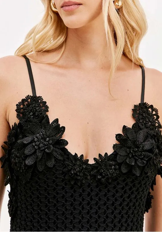 Vestido Super Midi De Alças Com Aplicação