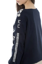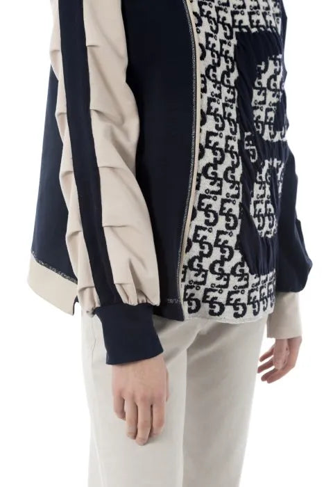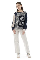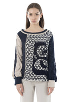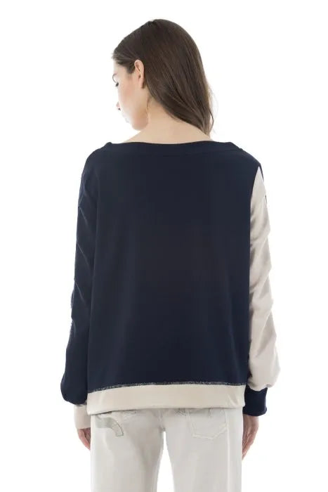 Blue and beige ‘EC’ sweatshirt with boat neckline