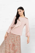Sequined skirt and pink knitwear