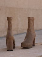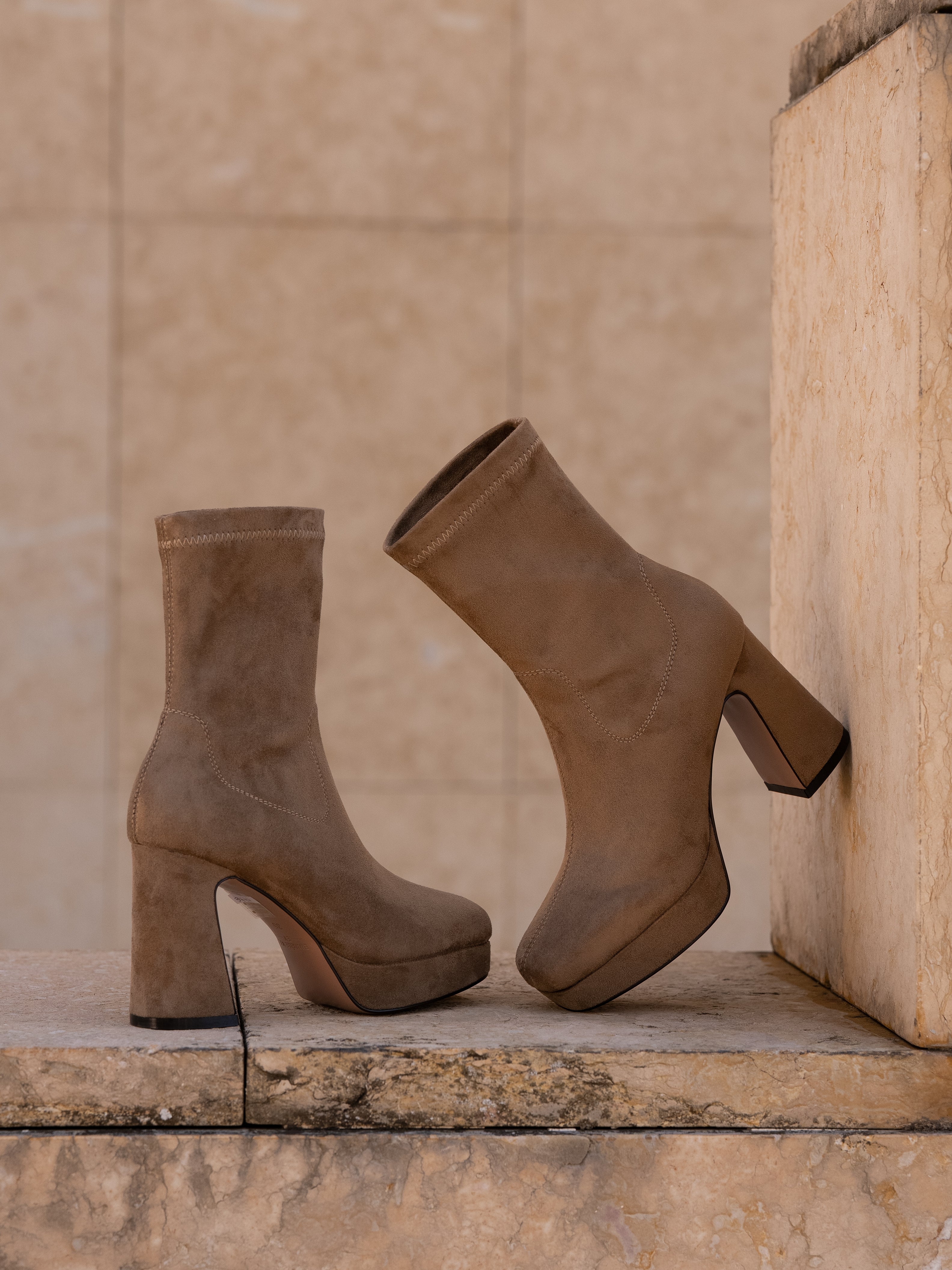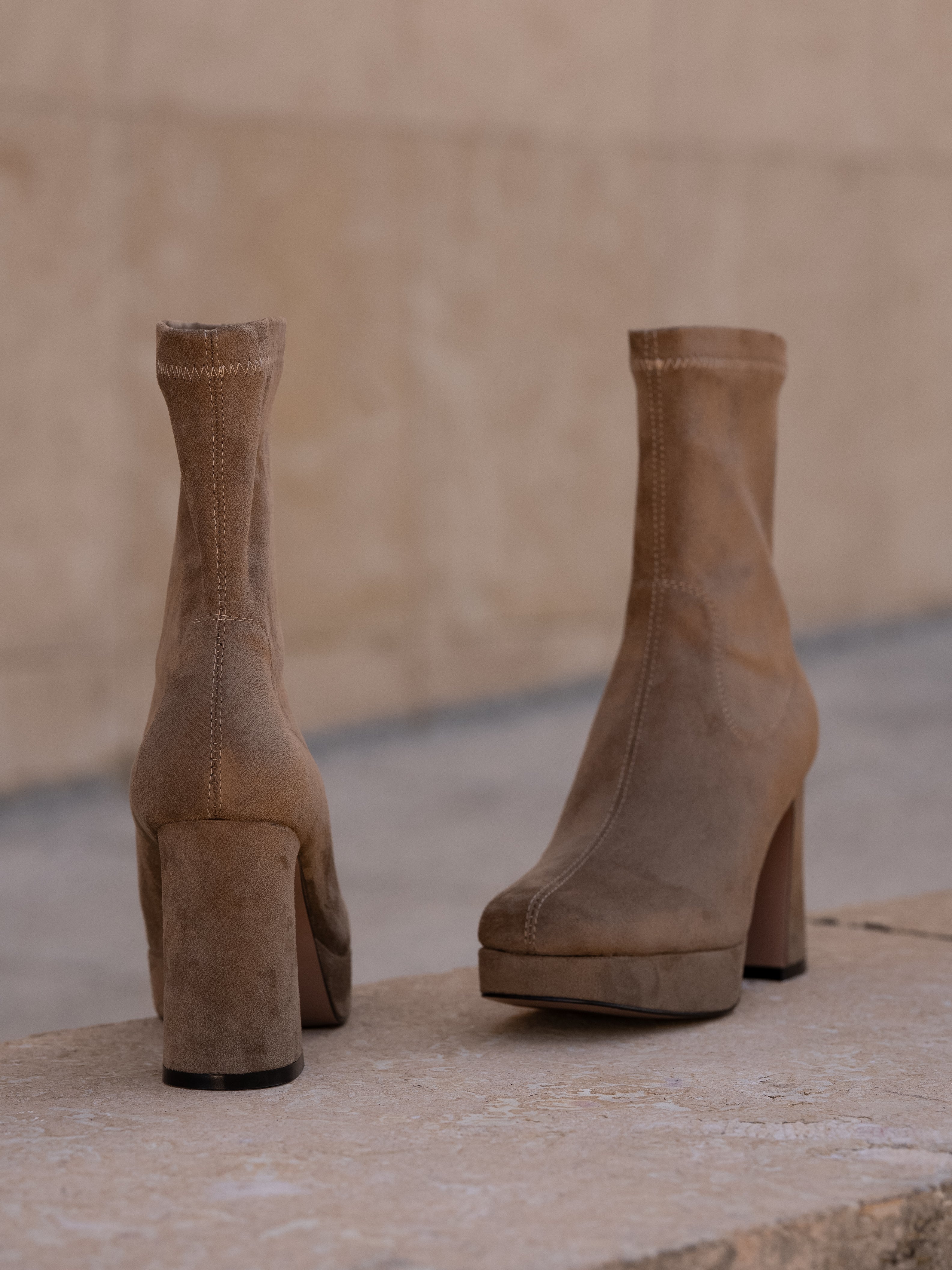 Stretch microfiber ankle boot, 30mm platform and 100mm heel