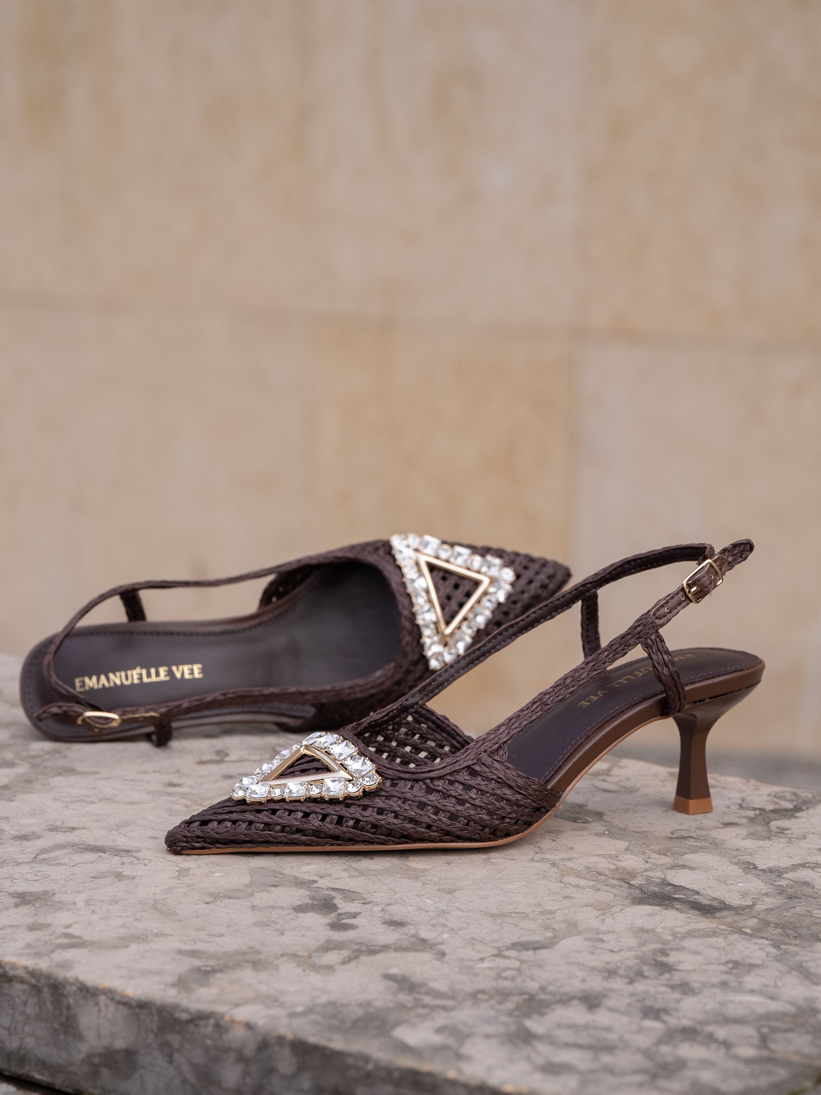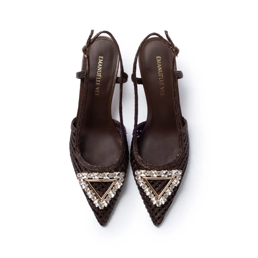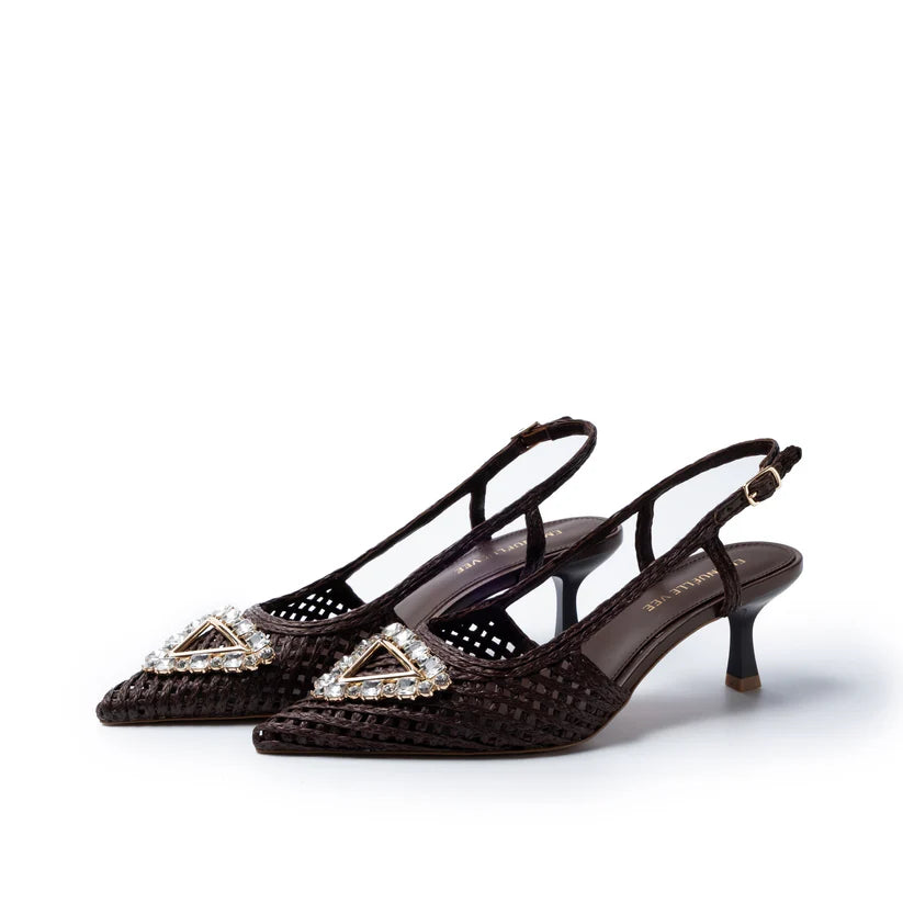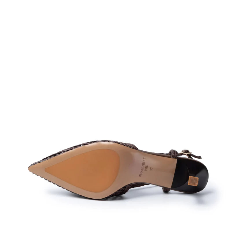 Chanel in raffia cornelie with rhinestone accessory, 55mm heel, tunit sole