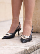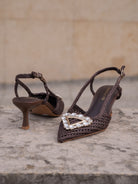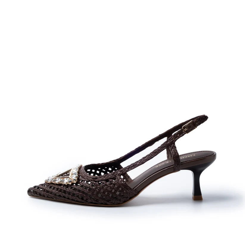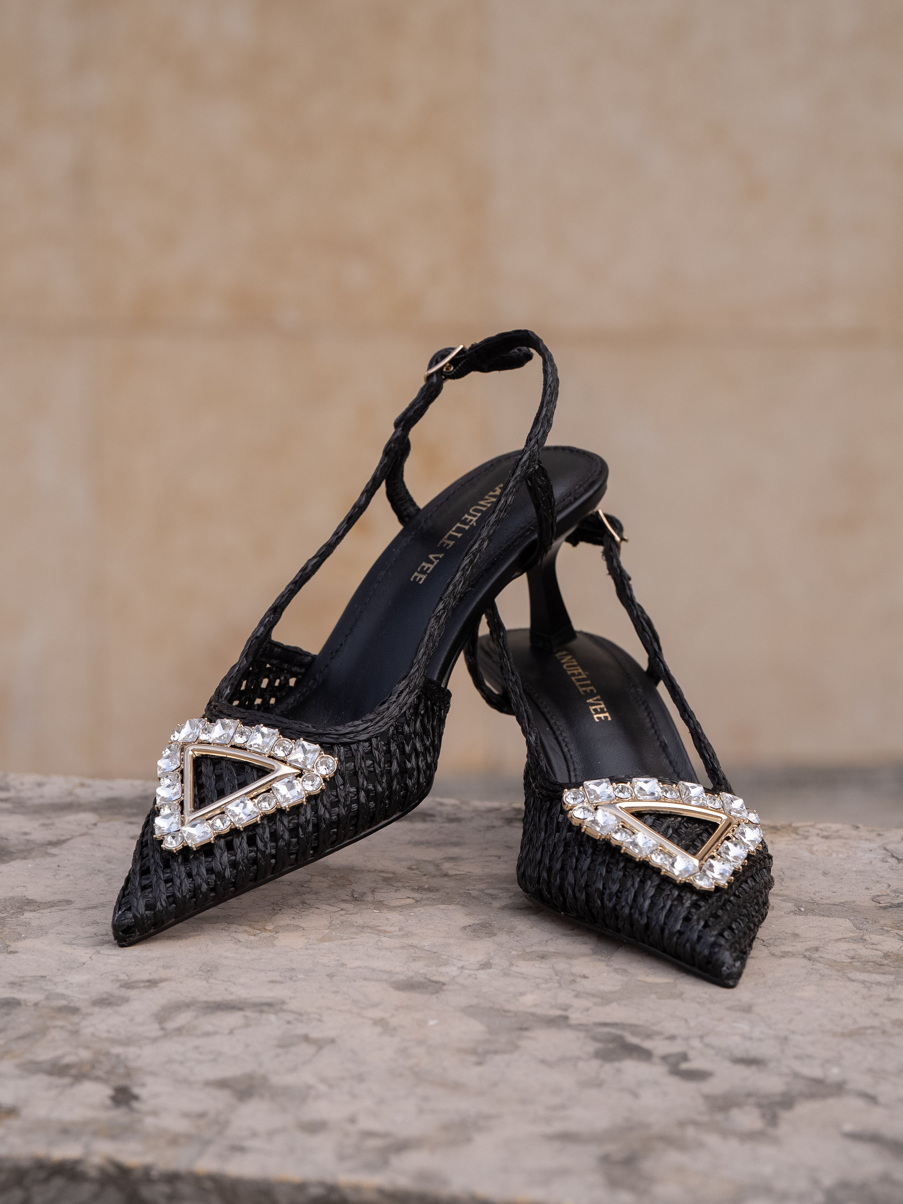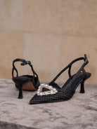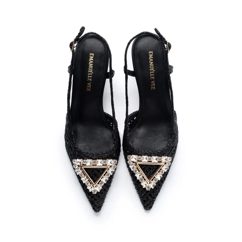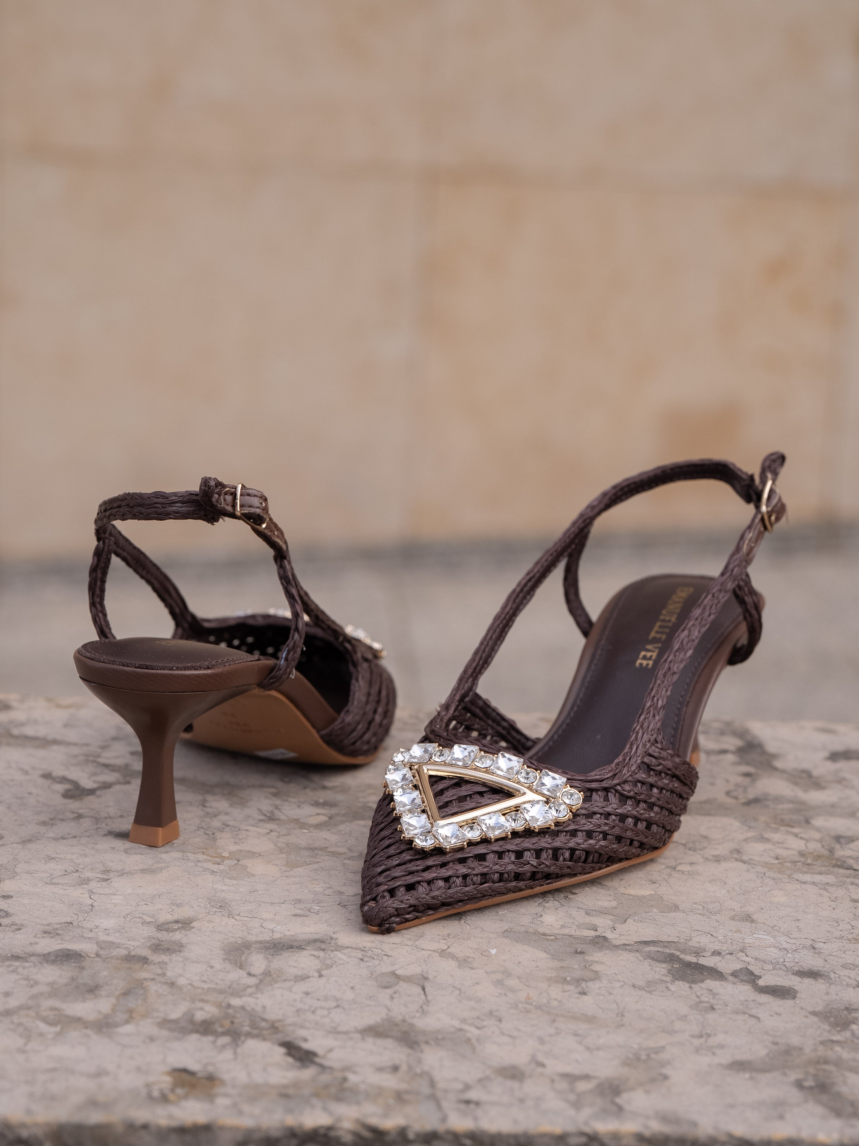 Chanel in raffia cornelie with rhinestone accessory, 55mm heel, tunit sole