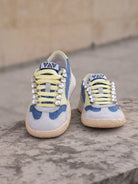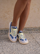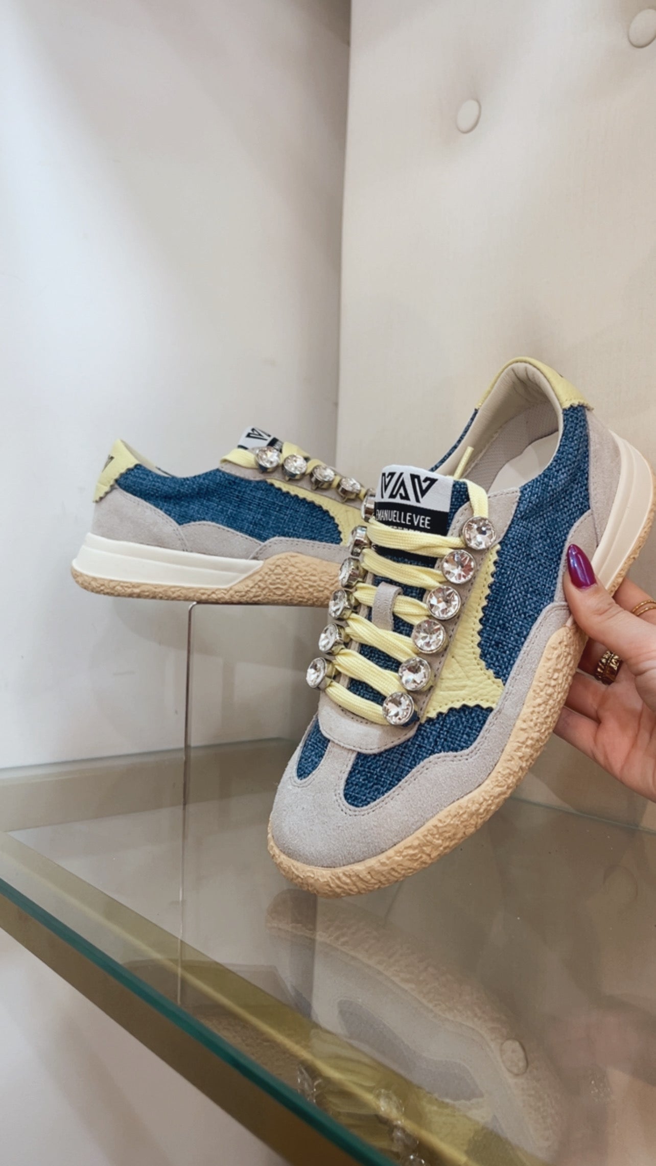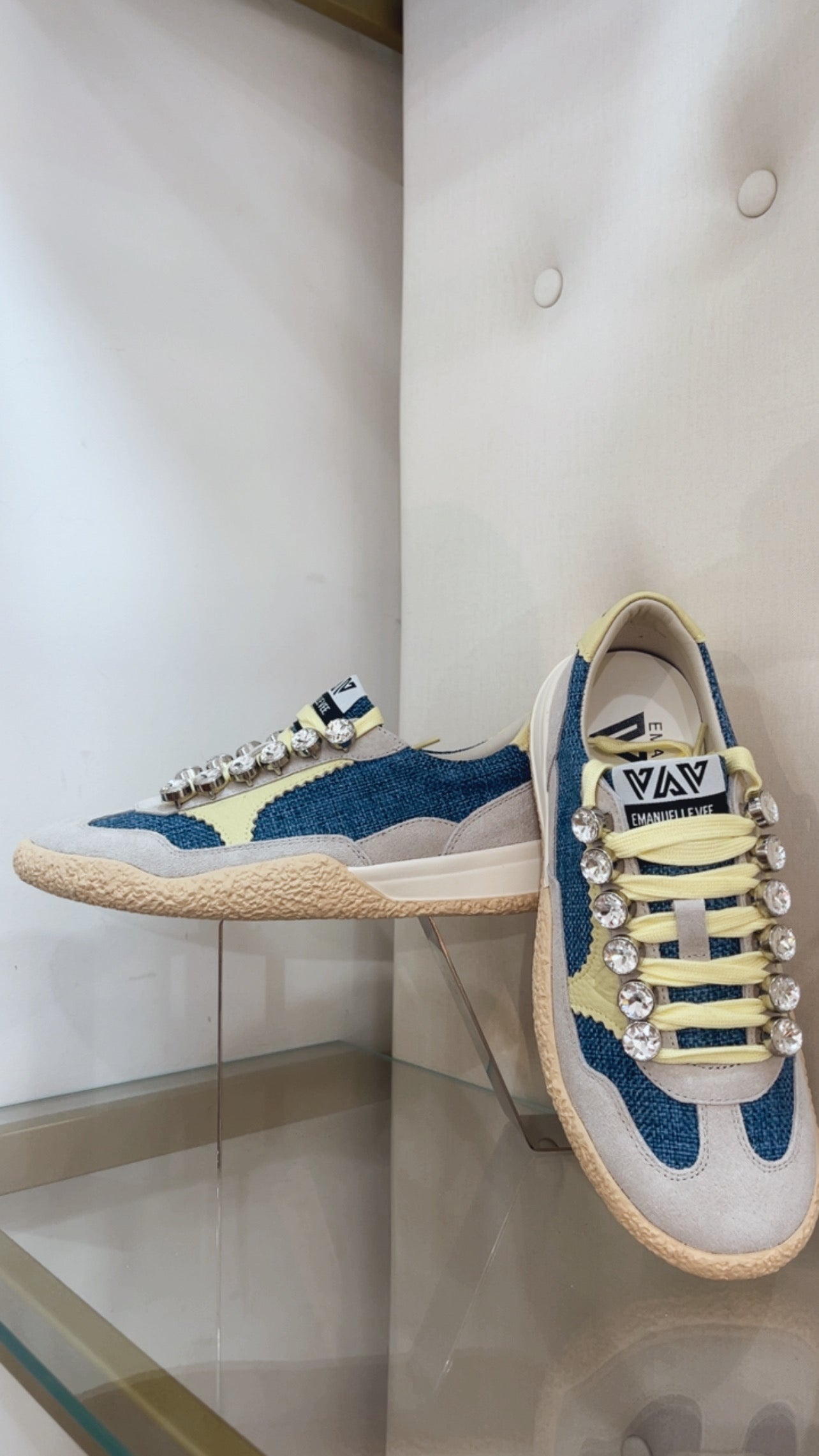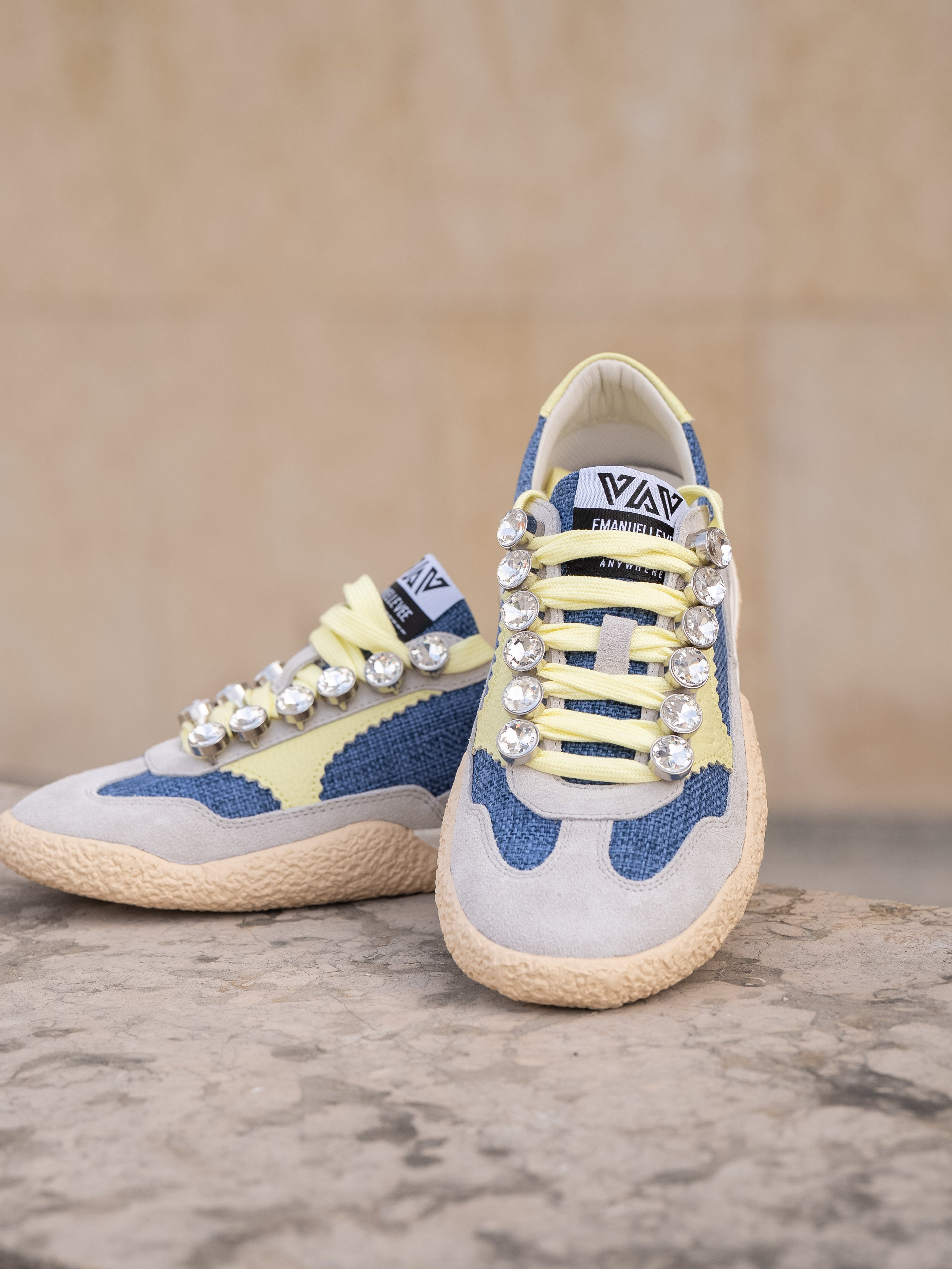 Lace-up sneakes in suede and canvas fabric, rhinestone detail and two-tone sole