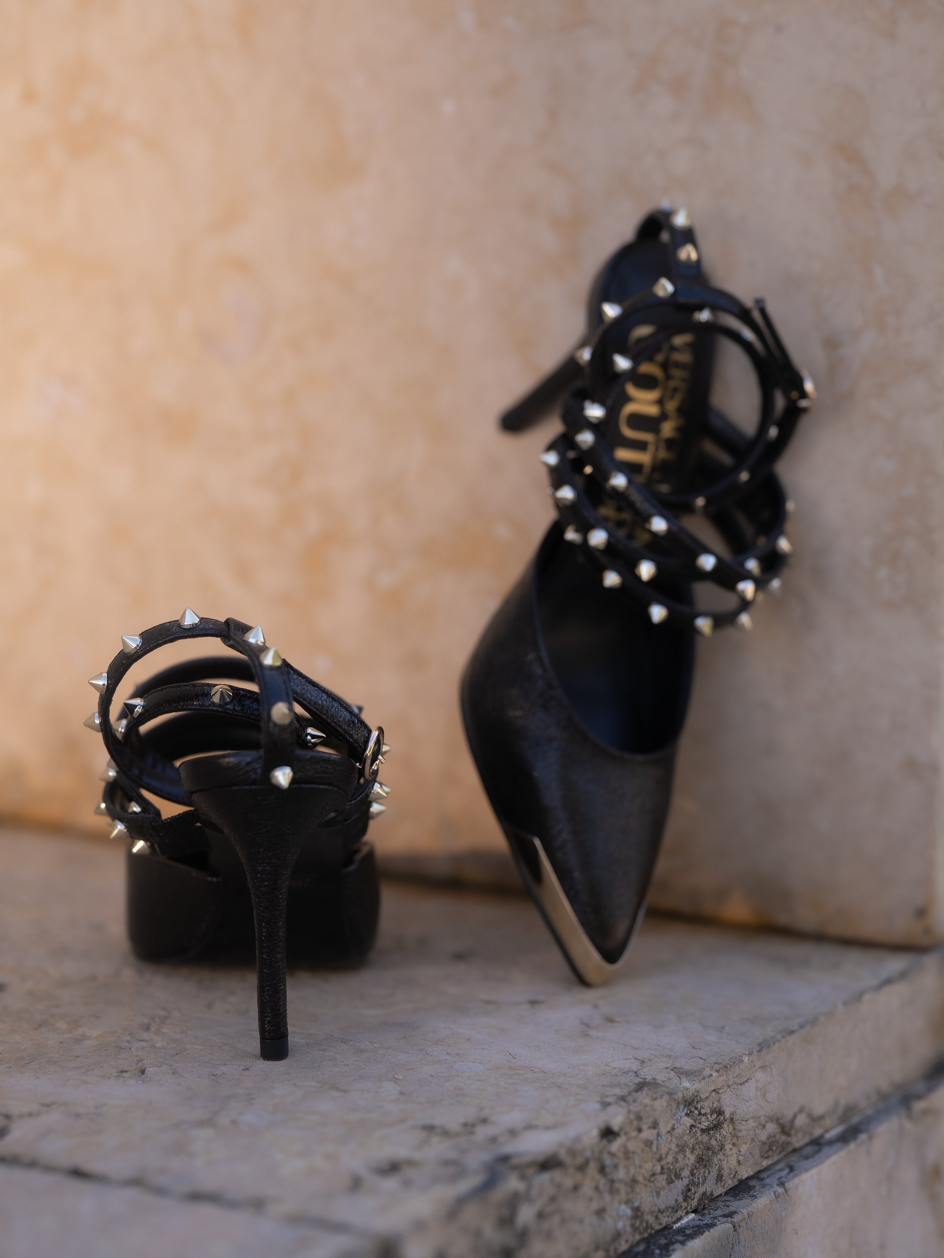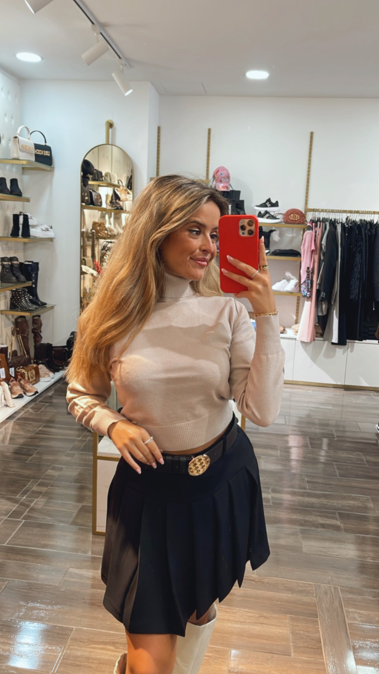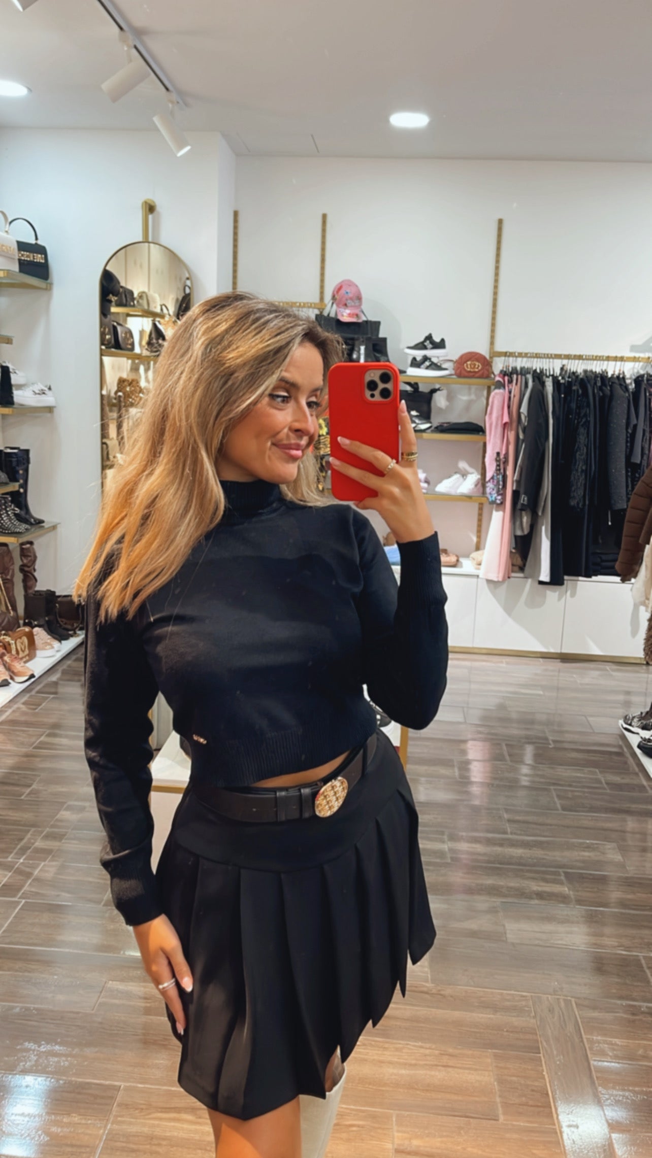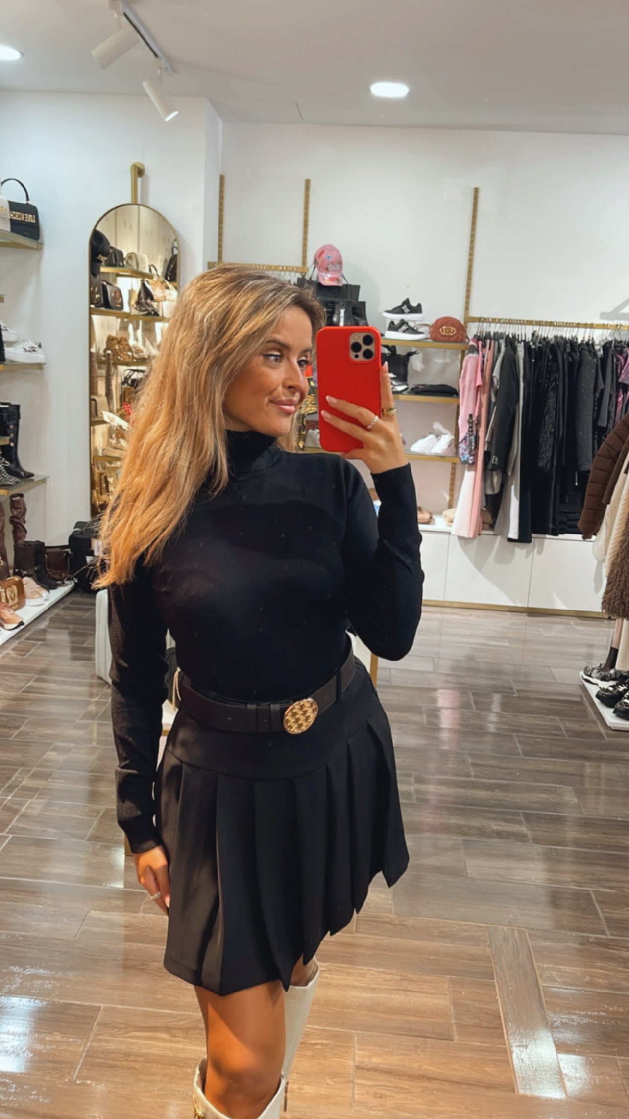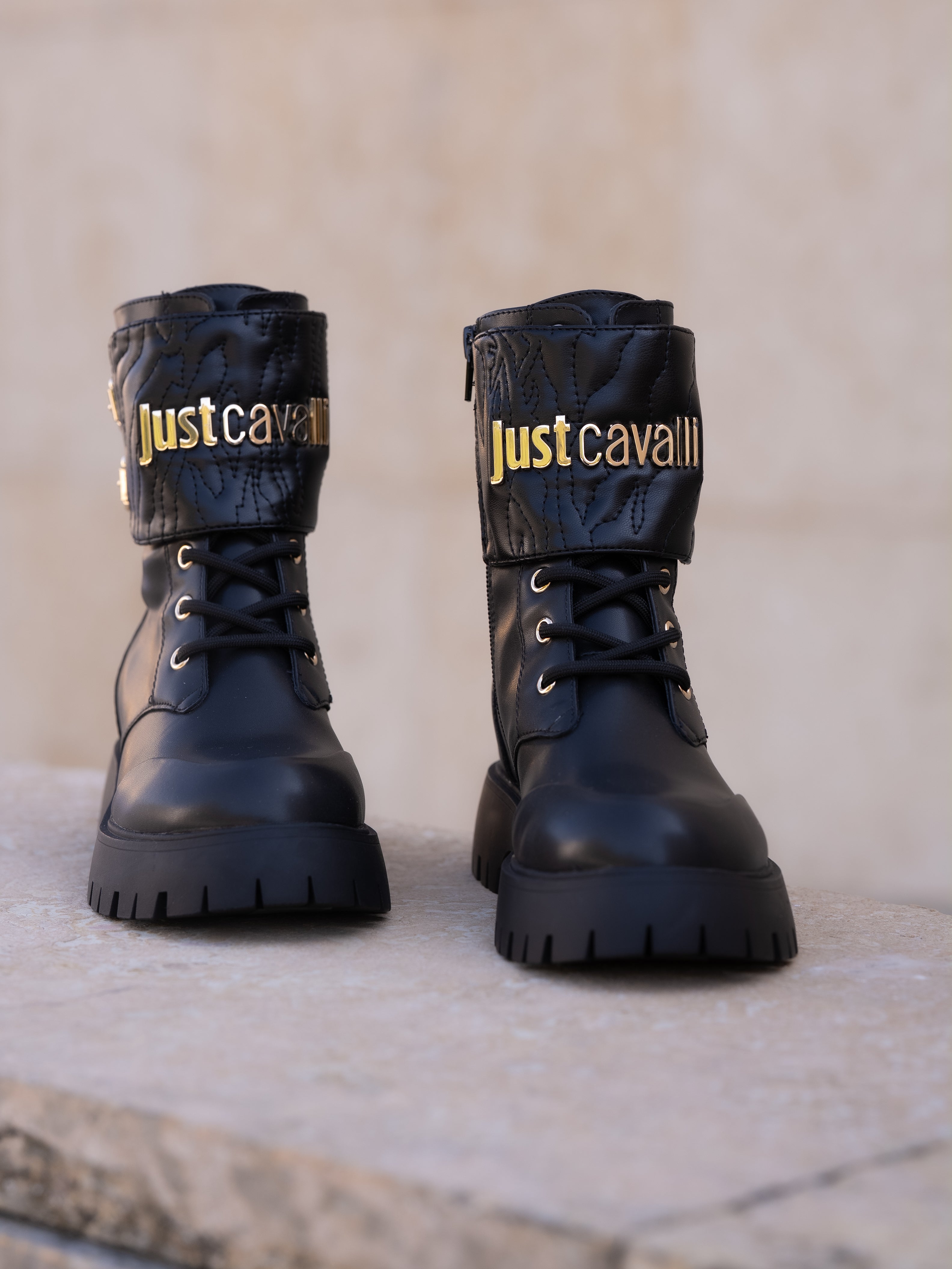 Black PU and Suede Mid-Calf Boot with Metal Harness Detail