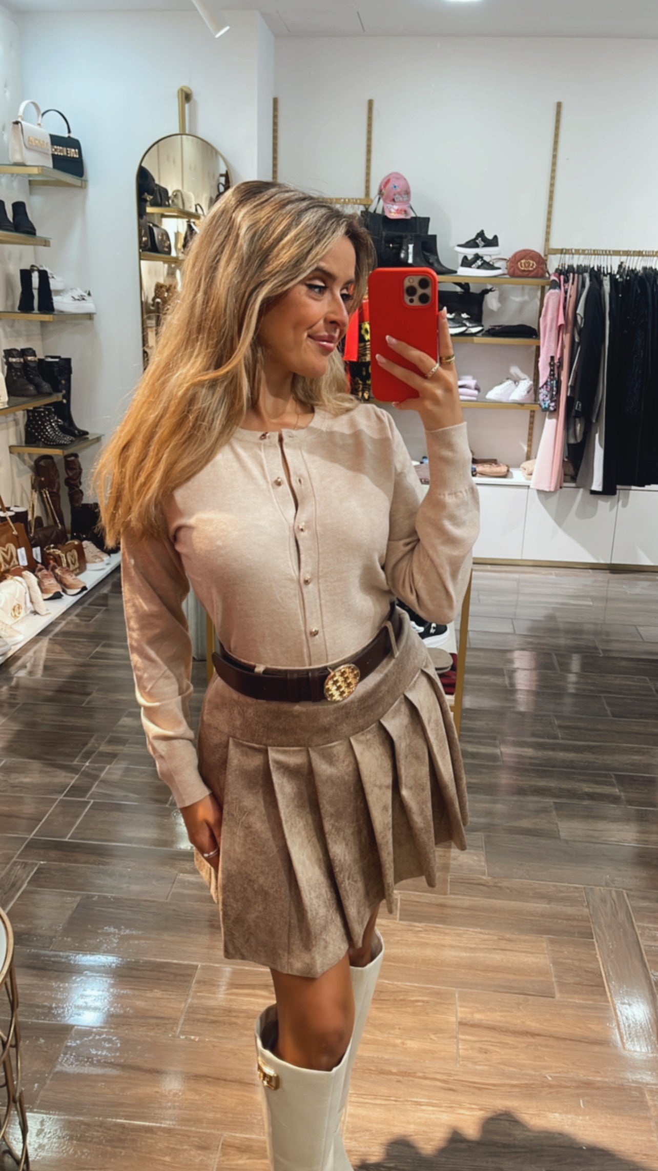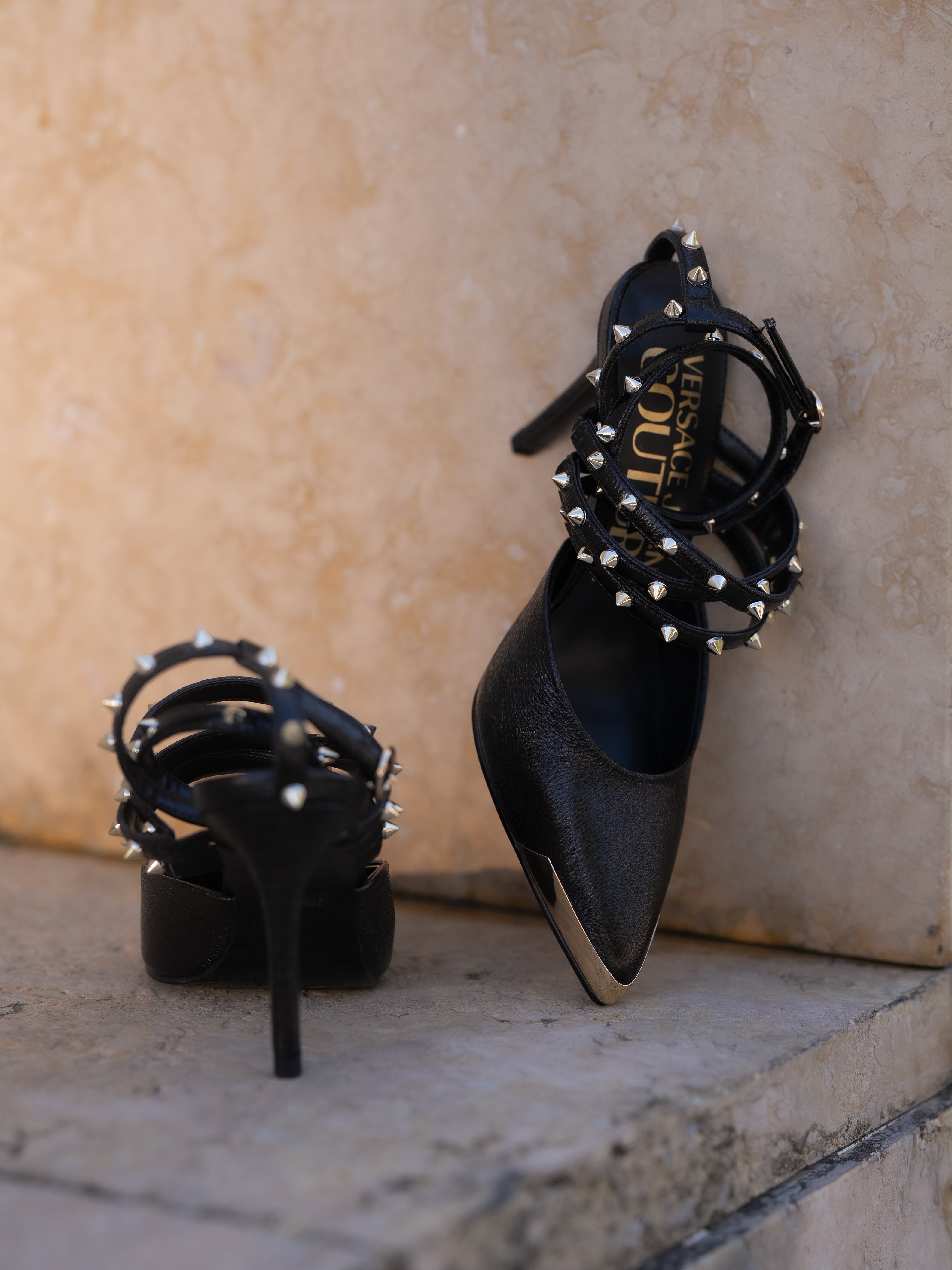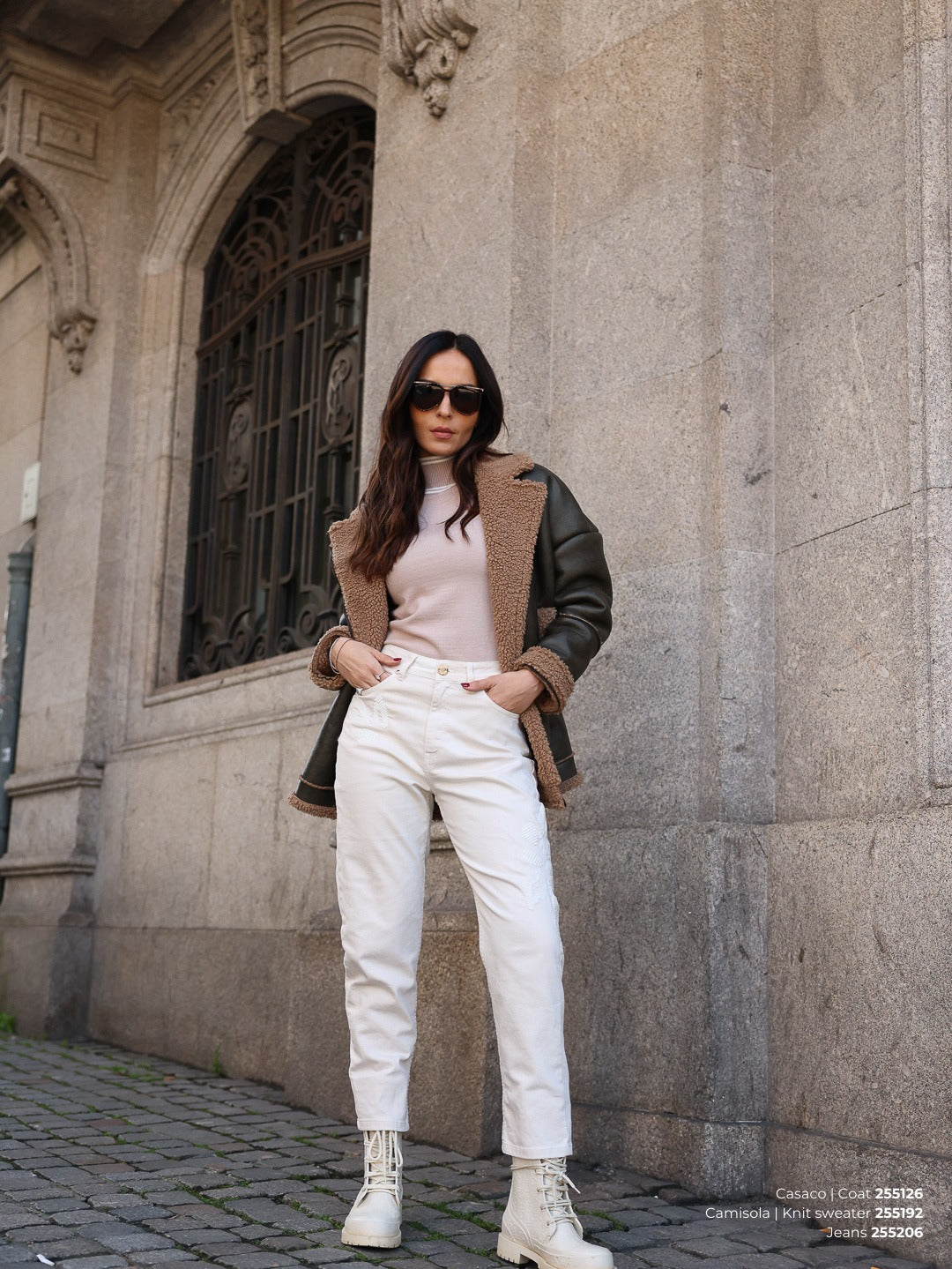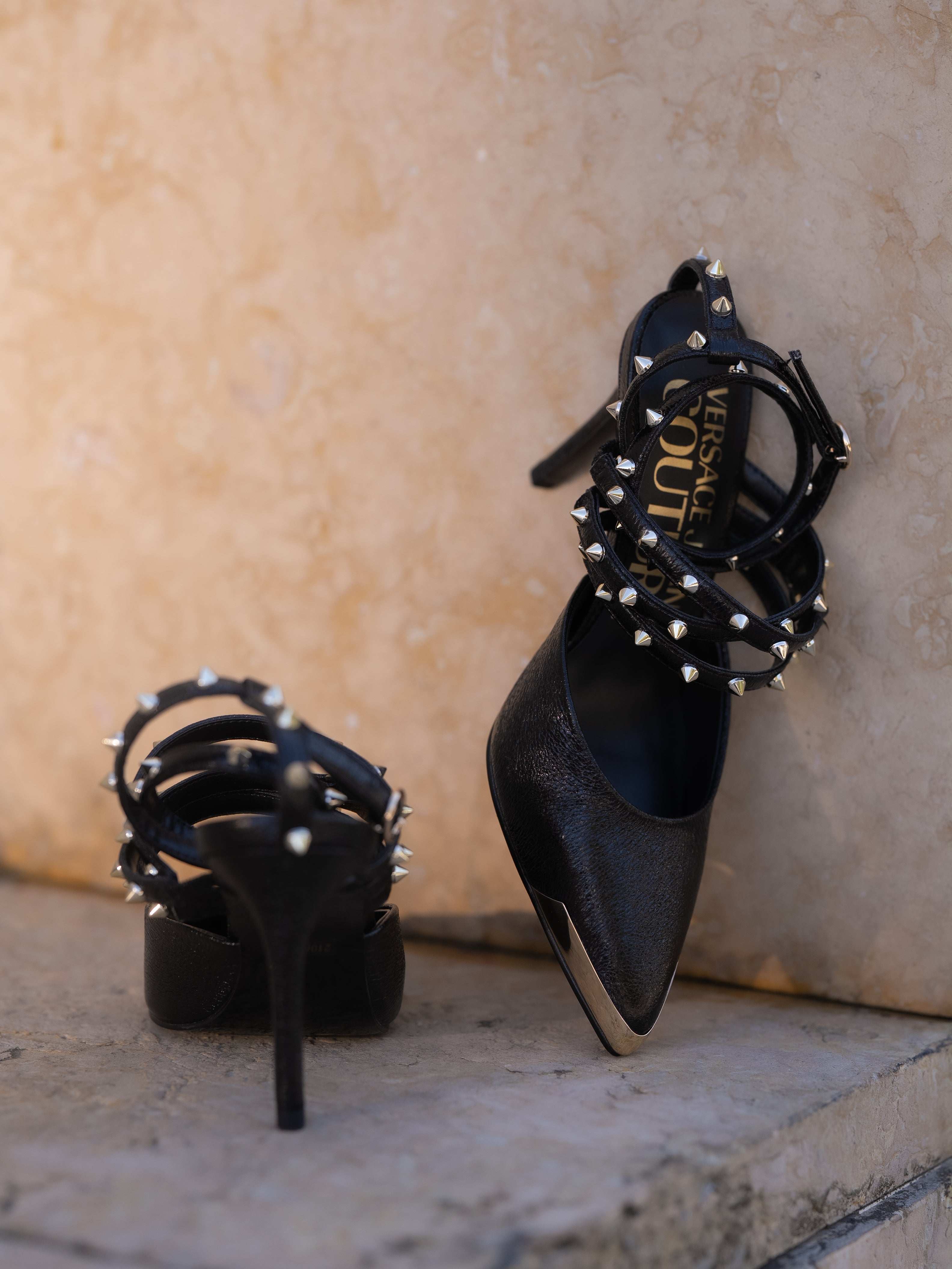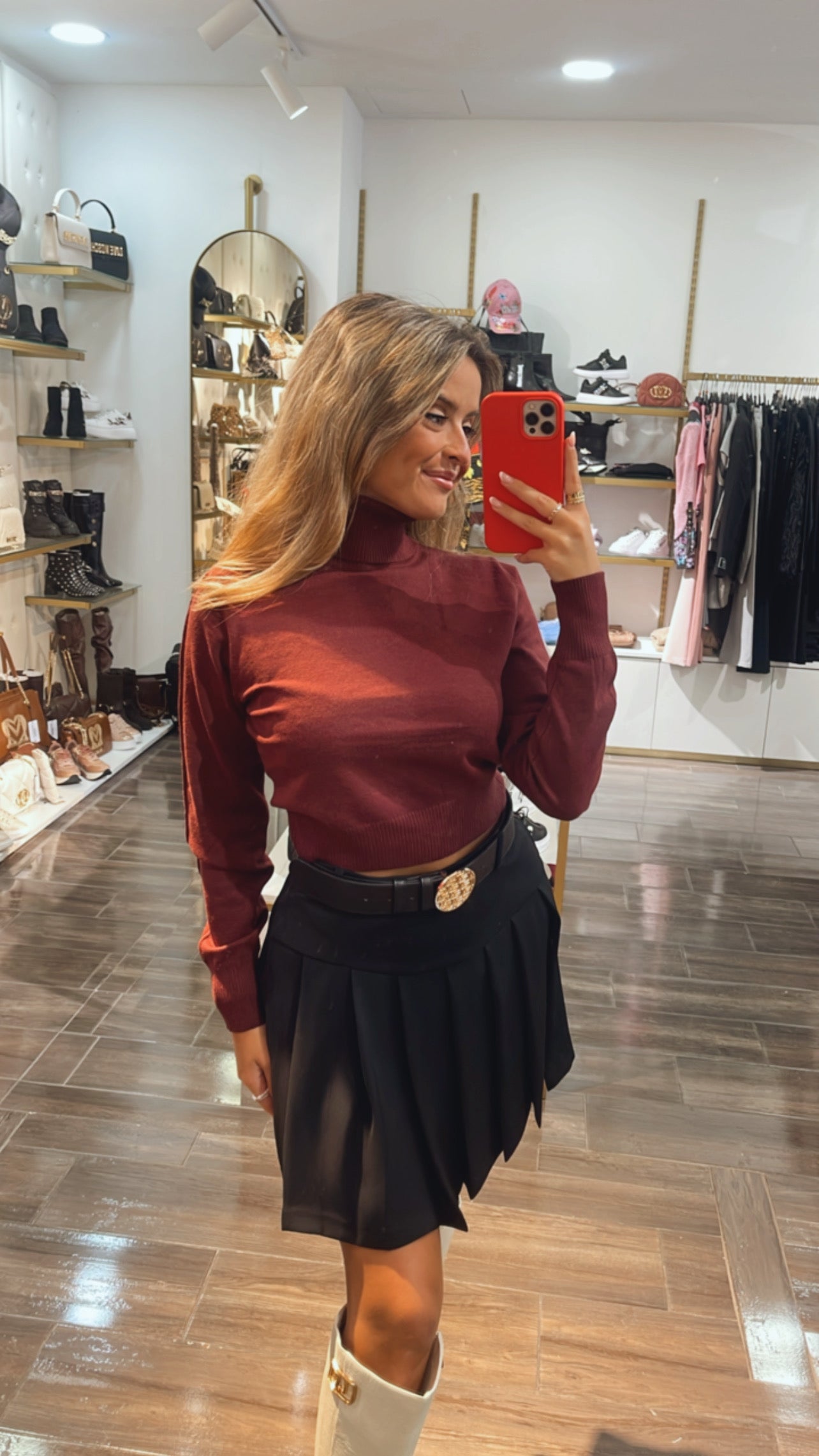 Black PU and Suede Mid-Calf Boot with Metal Harness Detail