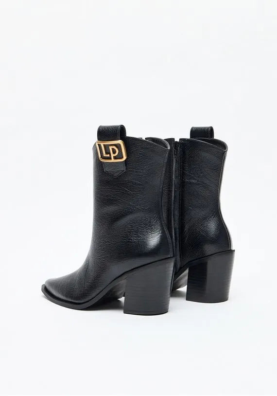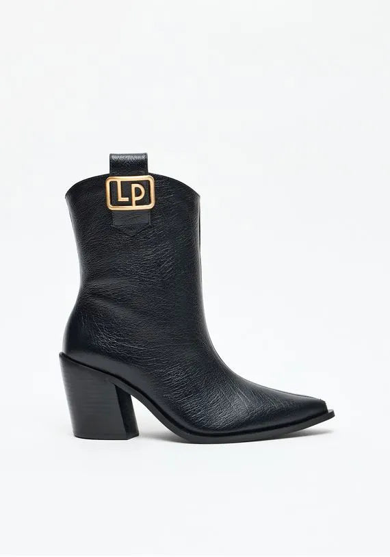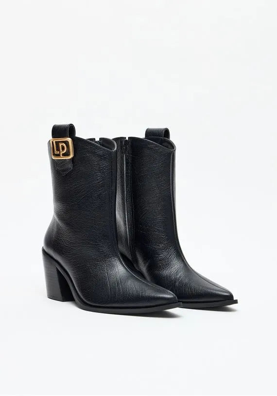 Bota Cano Médio Salto Bloco Bico Fino Couro