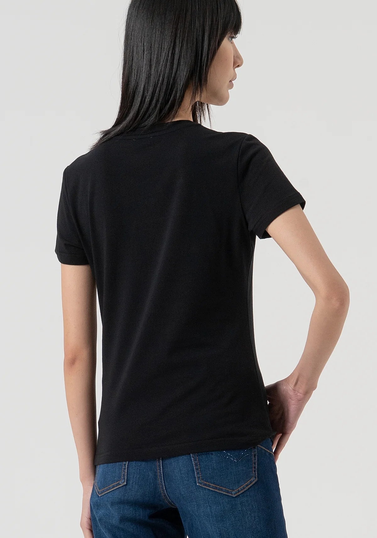 T-shirt slim fit made in cotton jersey. Round neck, logo with strasses at the center and short sleeves