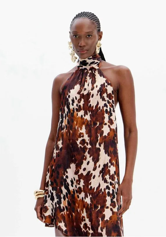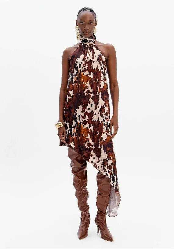 Vestido Assimétrico Estampado Com AmarraçãoZX