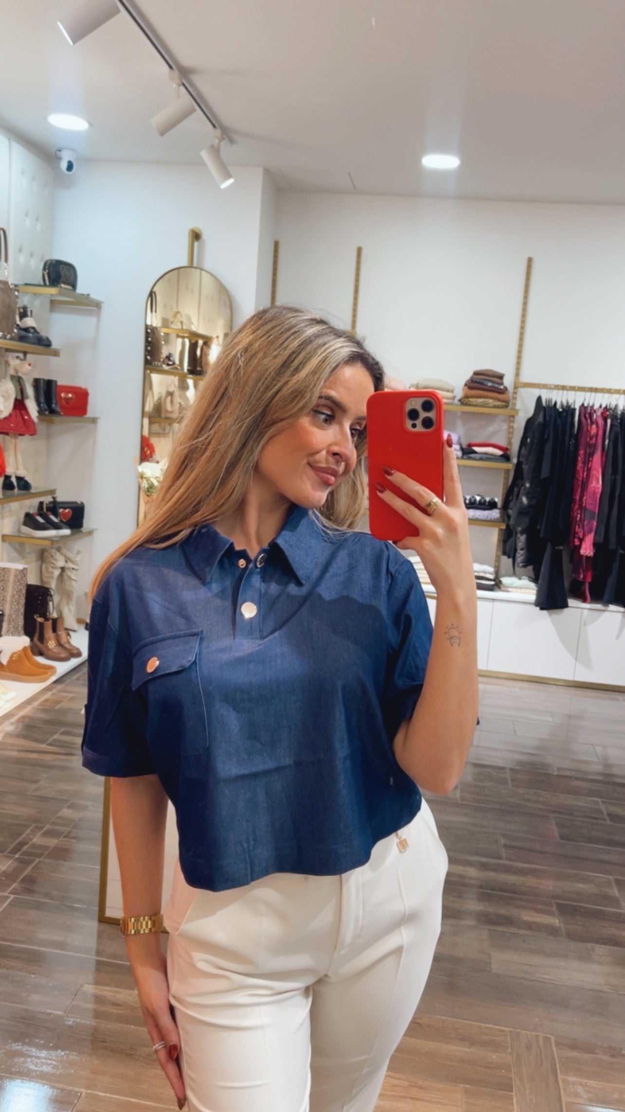 Denim polo blouse