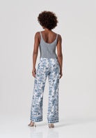 Palazzo pant flare with conceptual pattern. Regular waist, french pockets and wide bottom leg