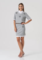 Sweater cropped with jewel applications. Round neck, applied shirt with classic cut neck and short sleeves