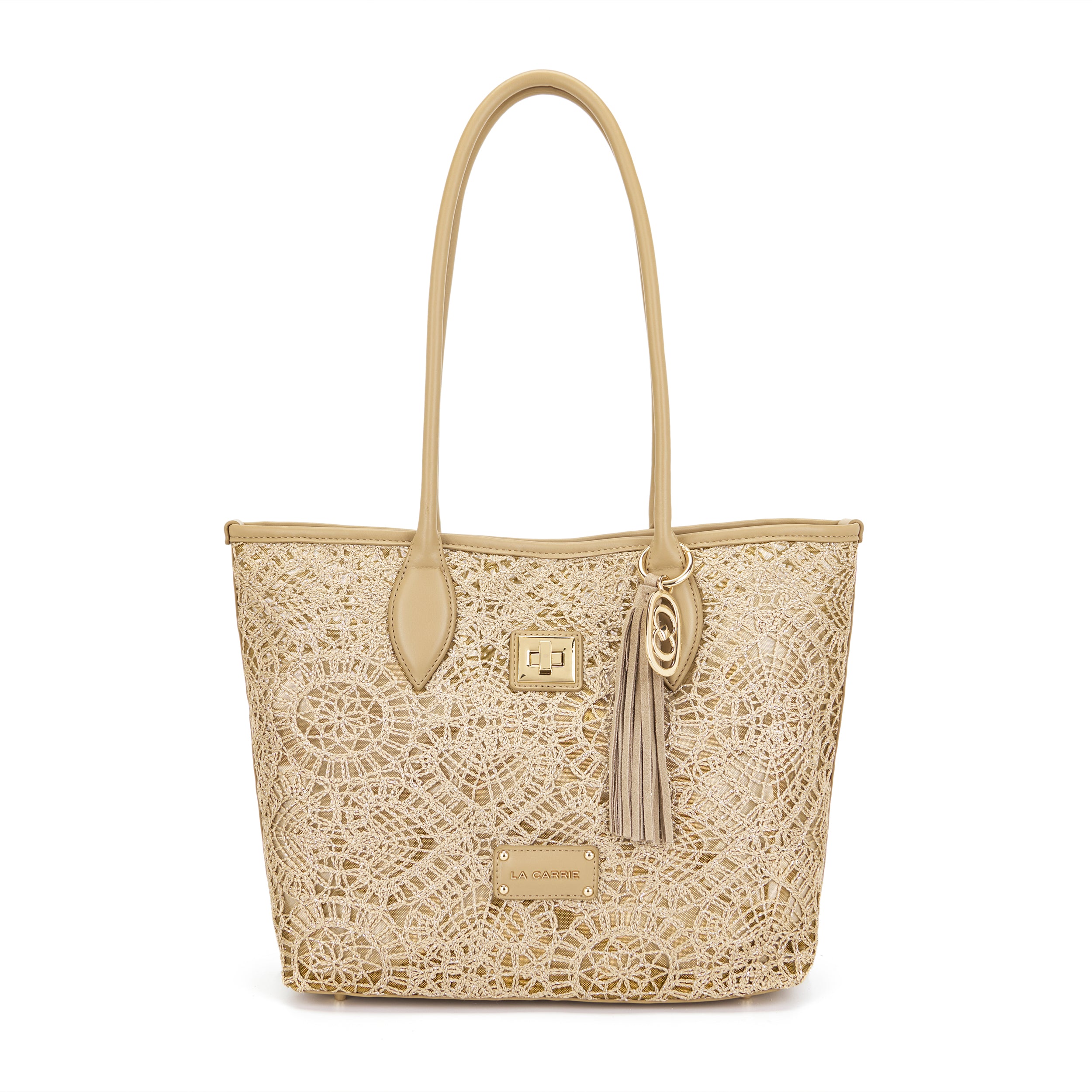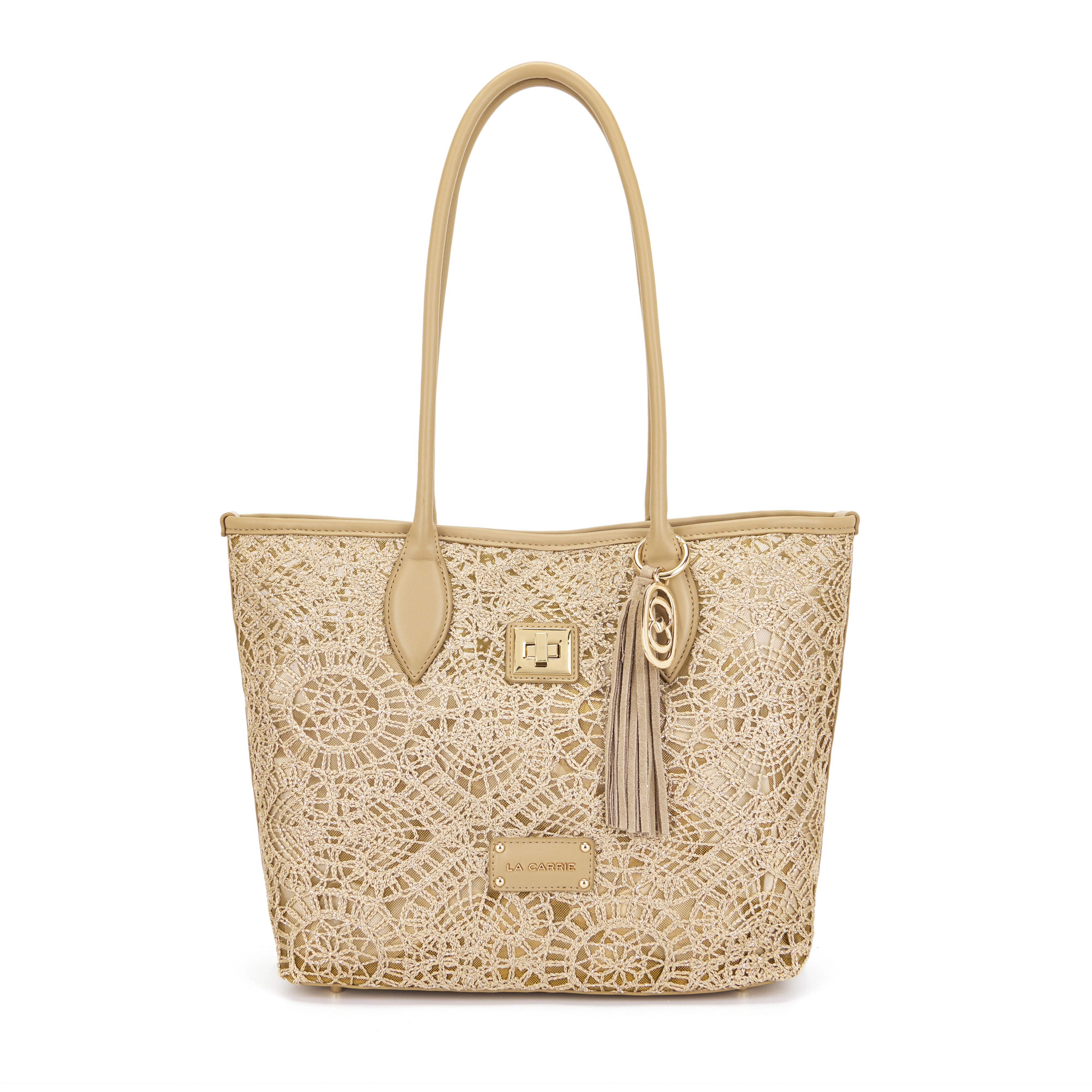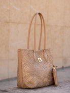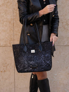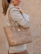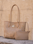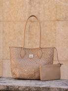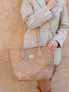 Shopping bag with woven embroidery, two handles