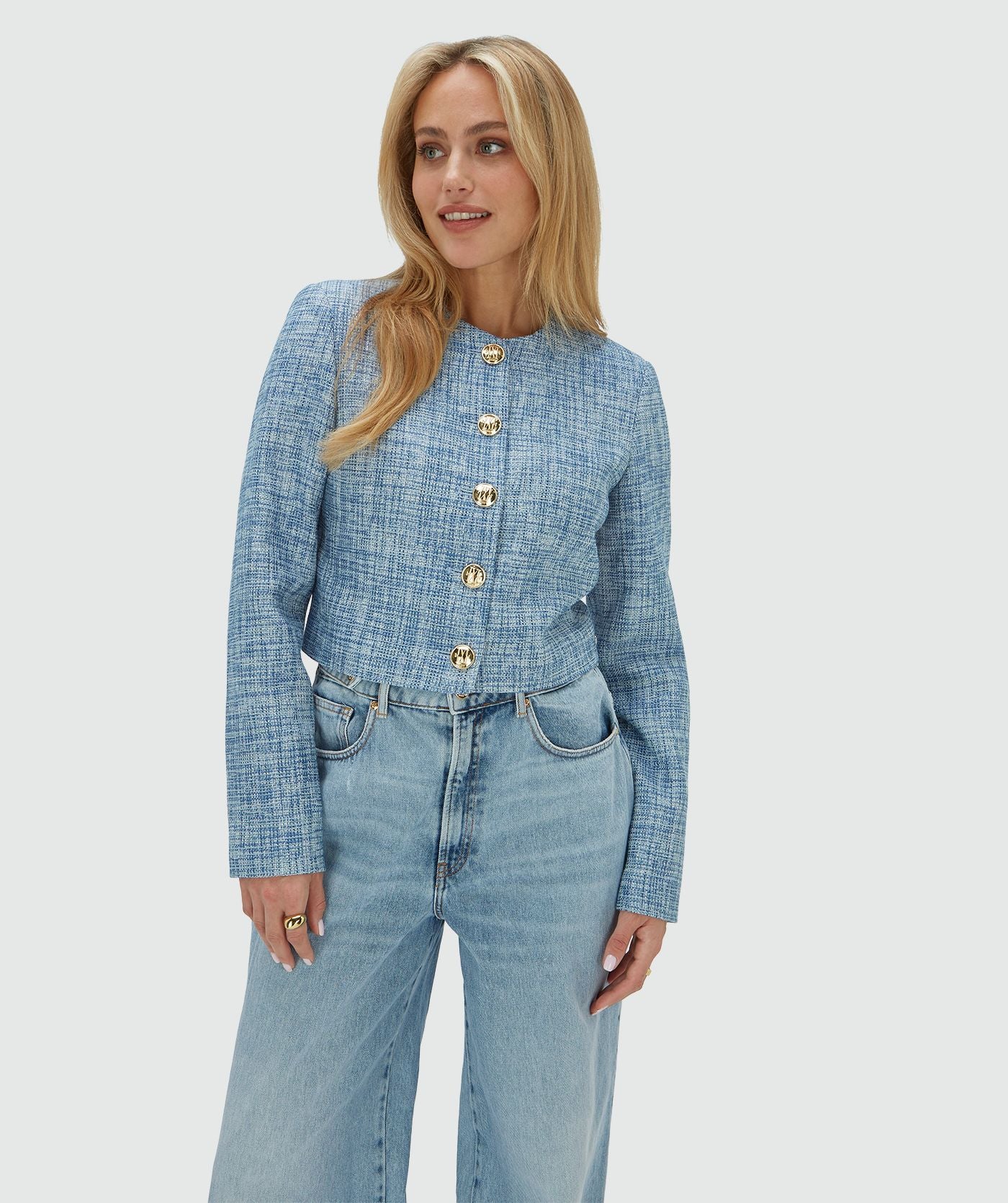 REMI cropped blazer with lurex - blue bouclé