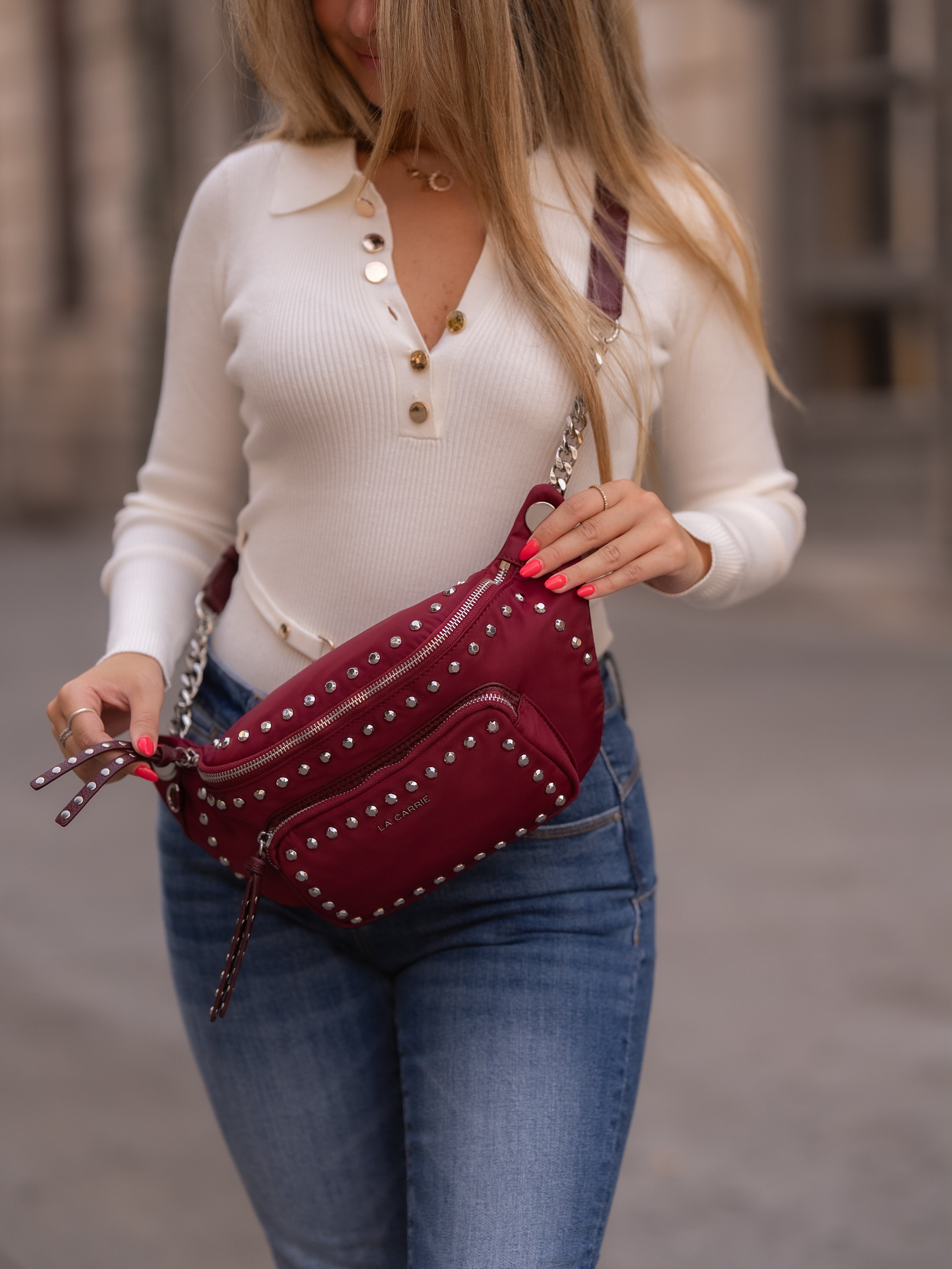 Fanny pack with silver pins