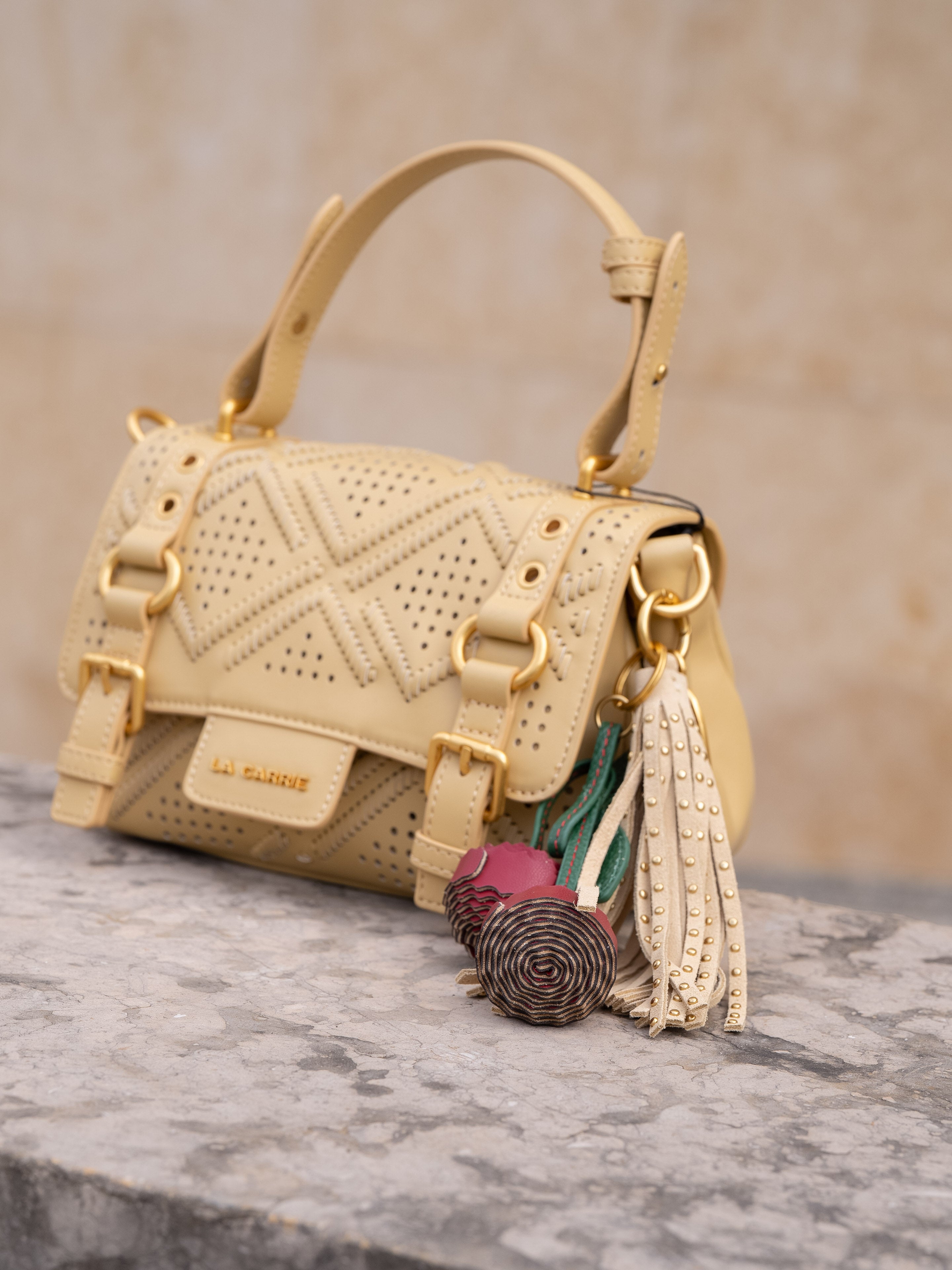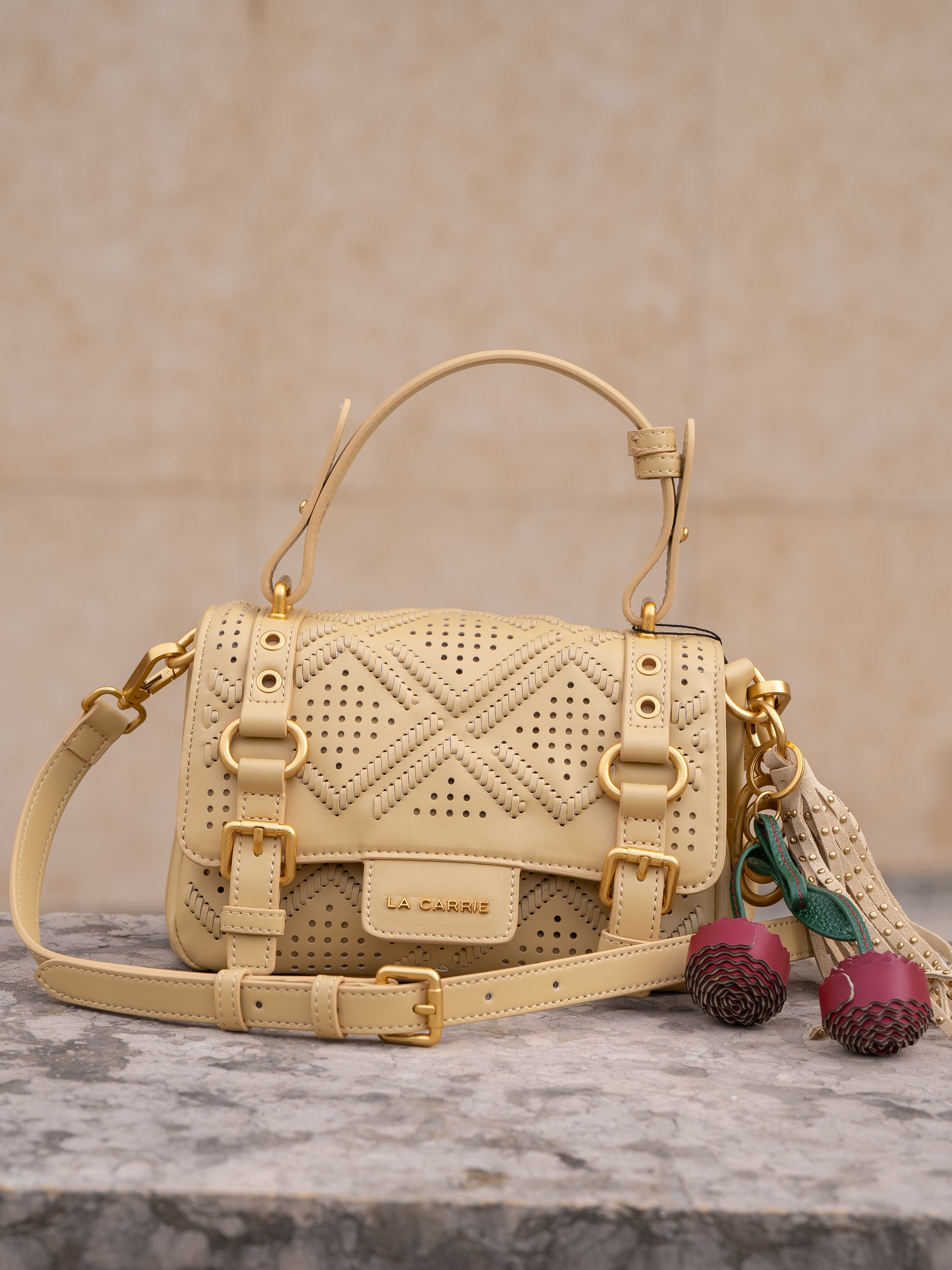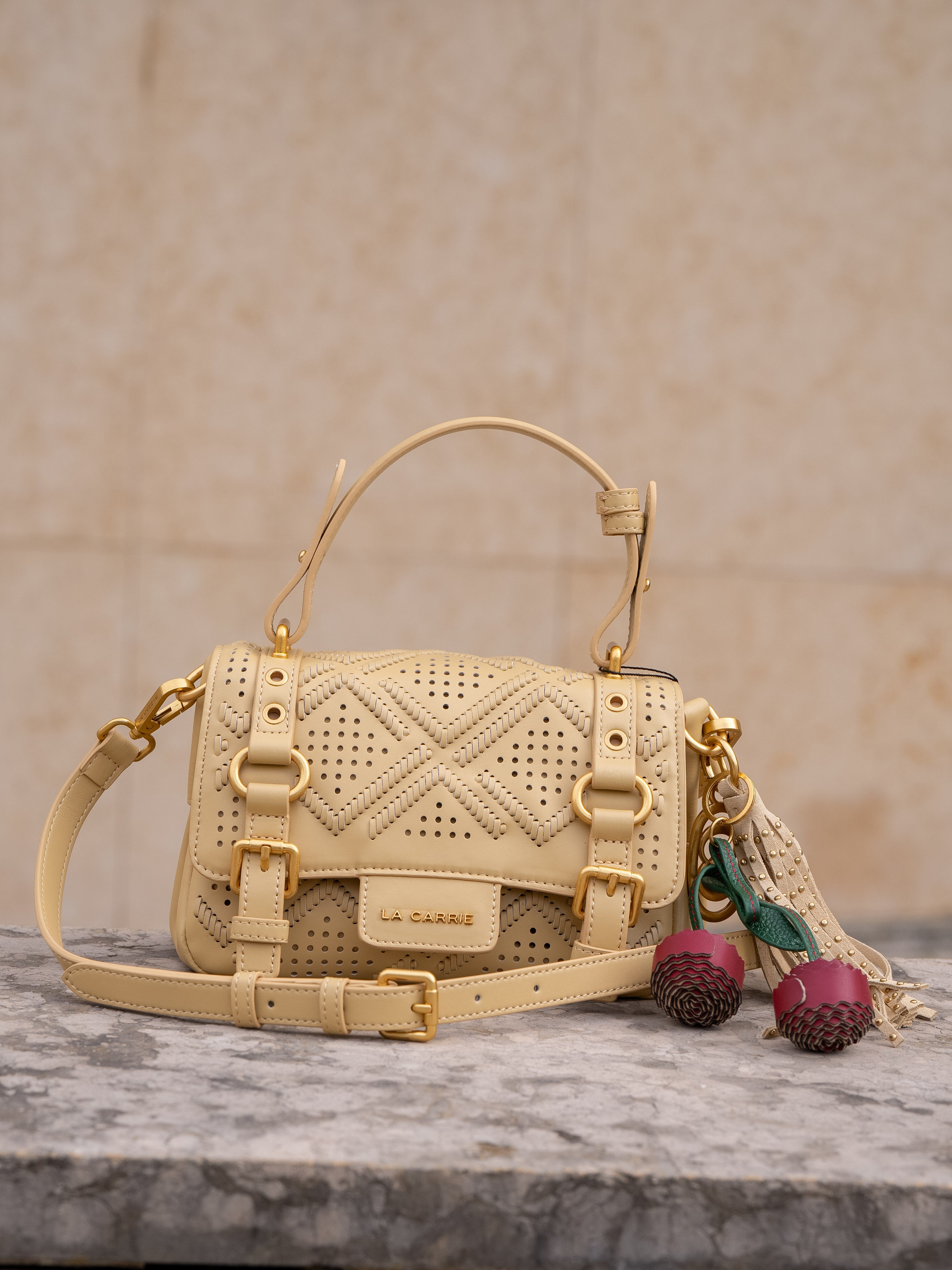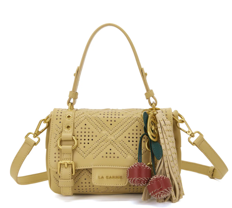 Small shopping bag in perforated leather with laser workmanship, removable shoulder strap