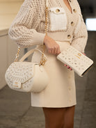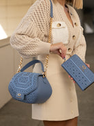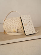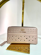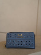 Portafoglio grande in ecopelle martellata con ricami a forma di fiori