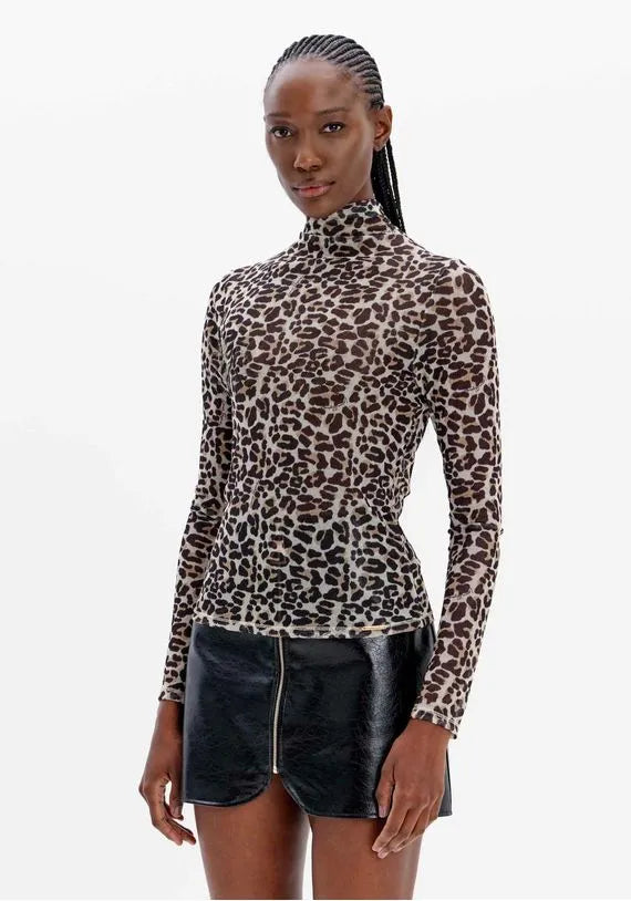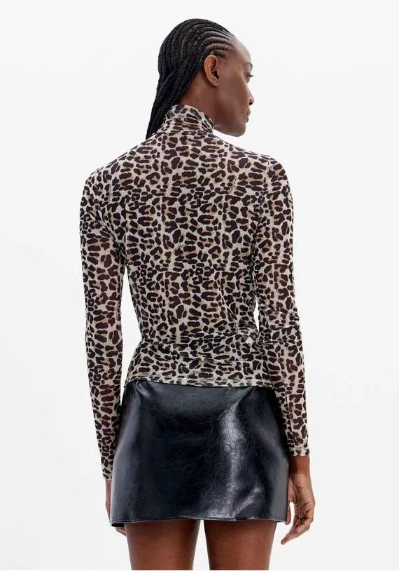 Blusa Estampada De Mangas Longas Com Gola Alta