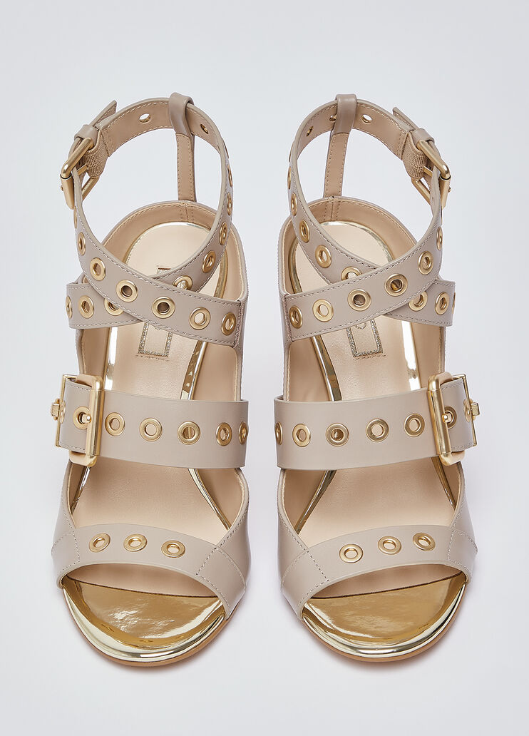 Leather sandals with heel.