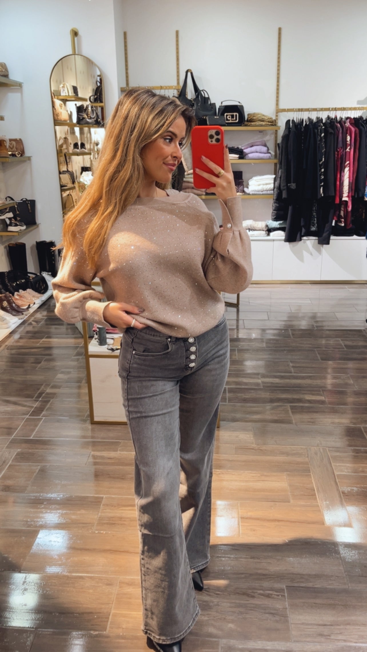 Grey jeans with sparkling details