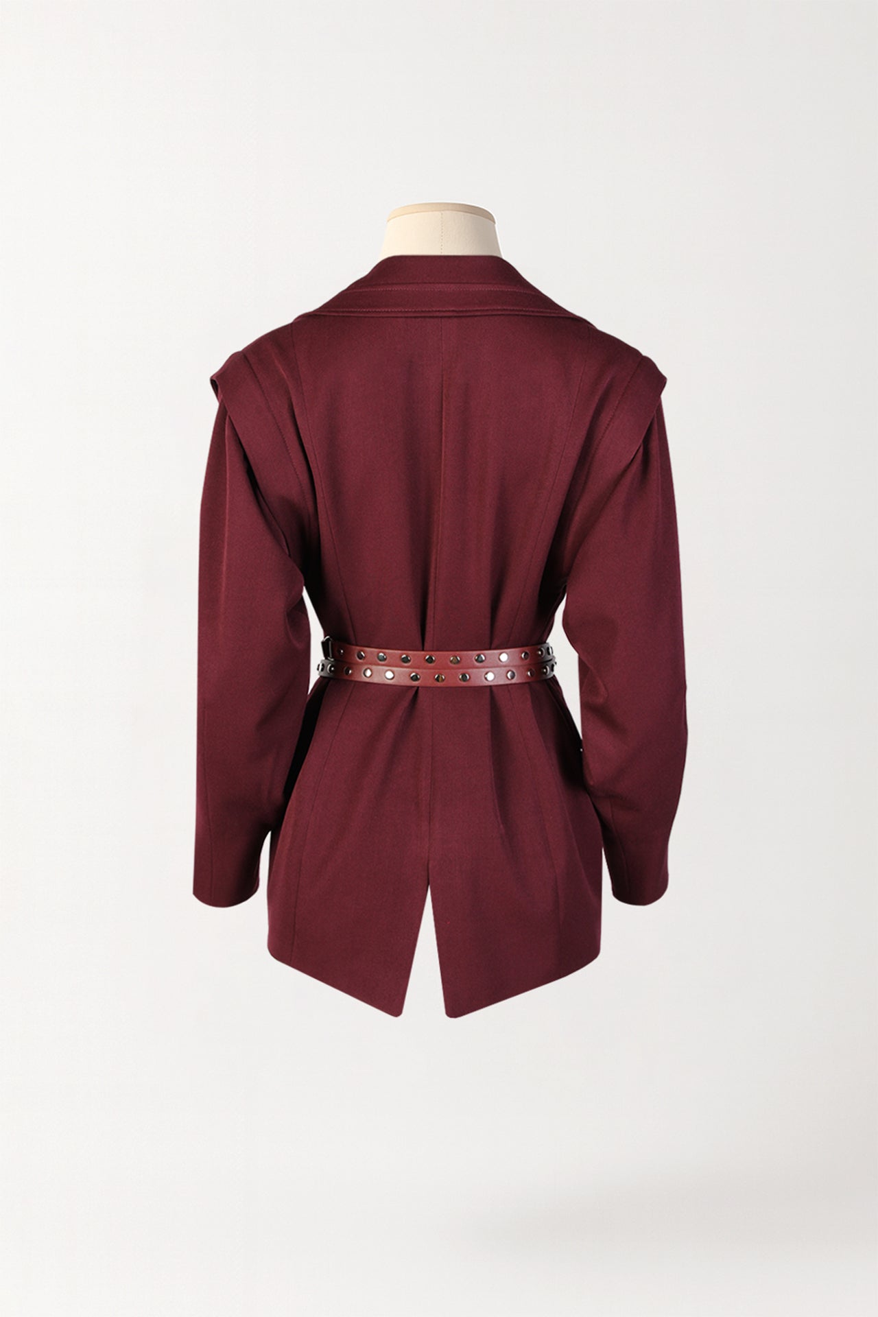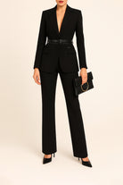 Blazer em tecido de alfaiataria premium, com gola e lapela clássicas e mangas compridas com ombreiras que acentuam a estrutura. O modelo apresenta bolsos frontais com aba e fecho com botões, realçado por um cinto em pele sintética na mesma tonalidade, que define e valoriza a silhueta. Uma peça que equilibra o rigor da alfaiataria tradicional com o toque contemporâneo da Sahoco.