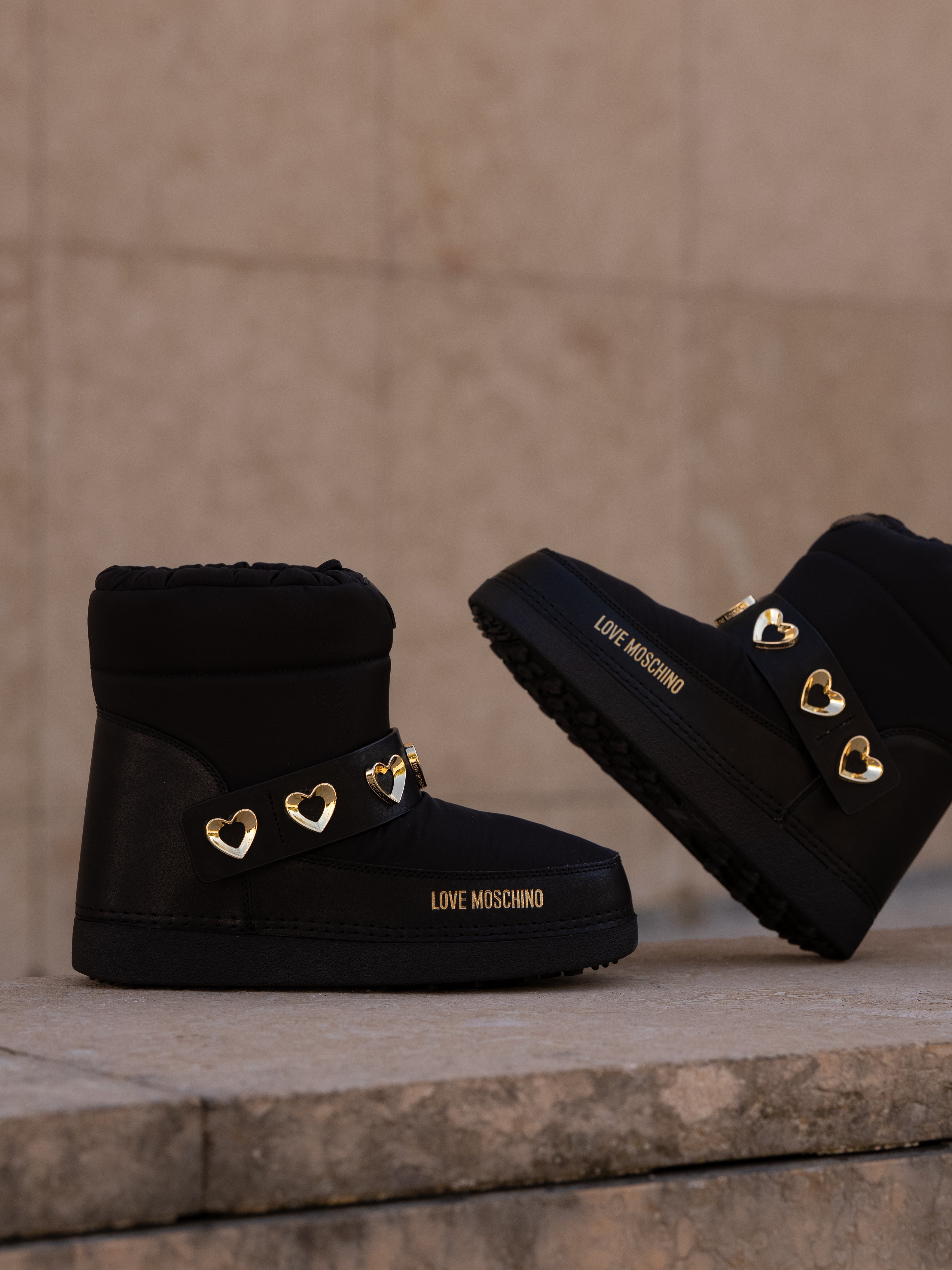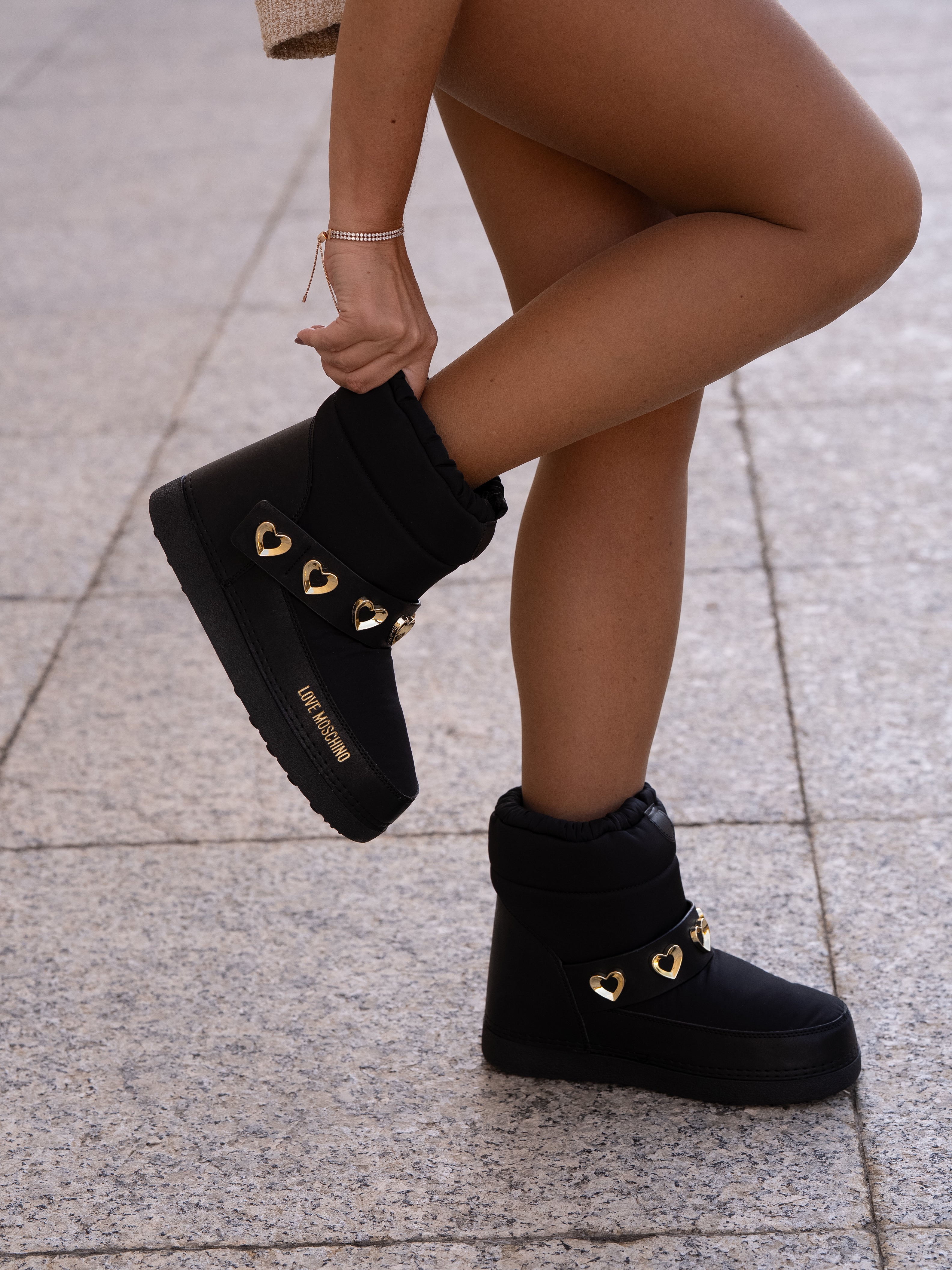 Moon boot with gold heart details