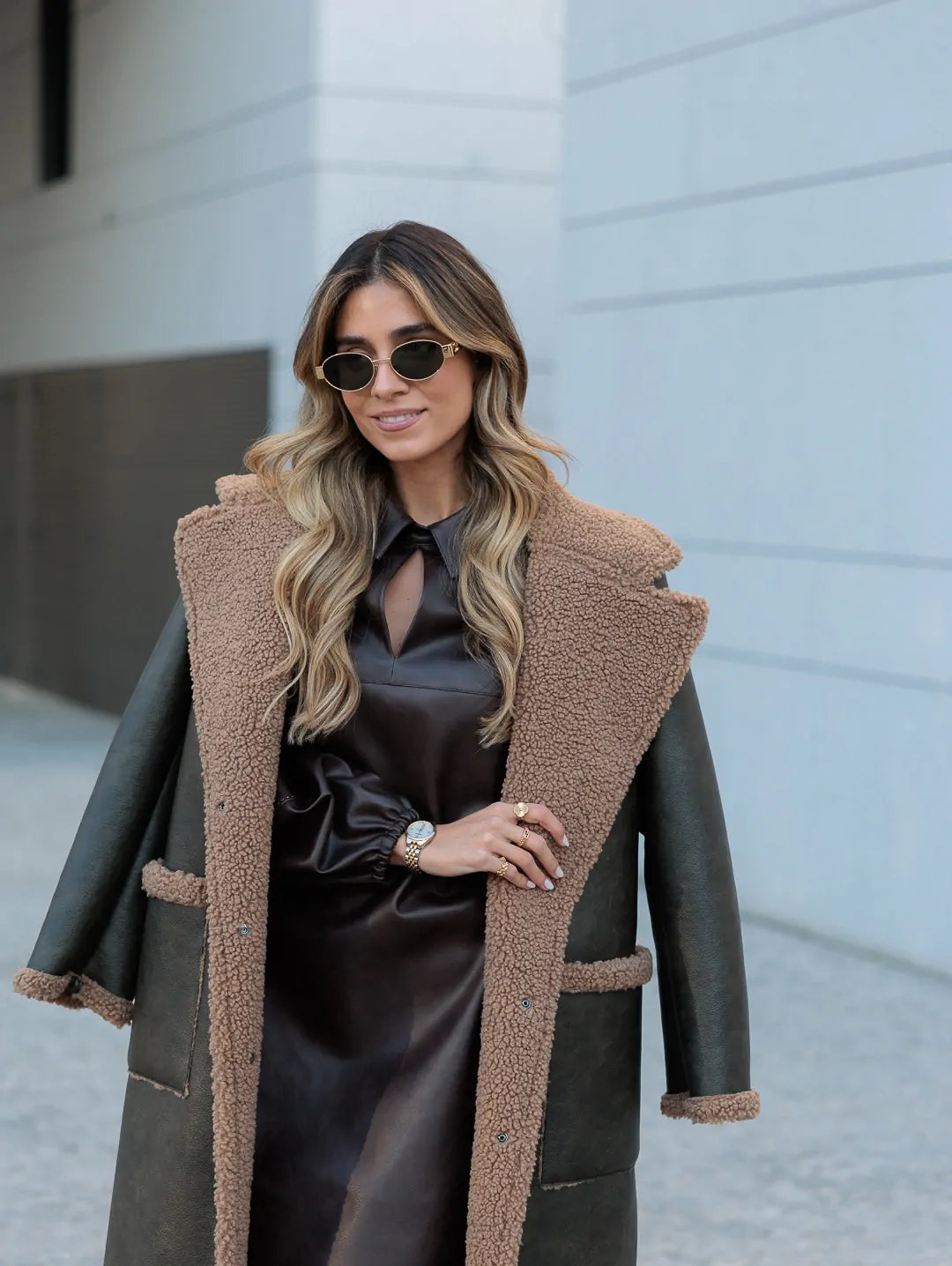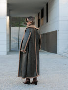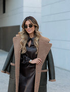 Casaco comprido com efeito de pele
