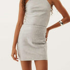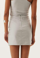 Saia Casual Feminino Lança Perfume curta com pedraria com logomania da marca. Possui zíper invisível na parte de trás. Estampa apenas na parte da frente da peça.