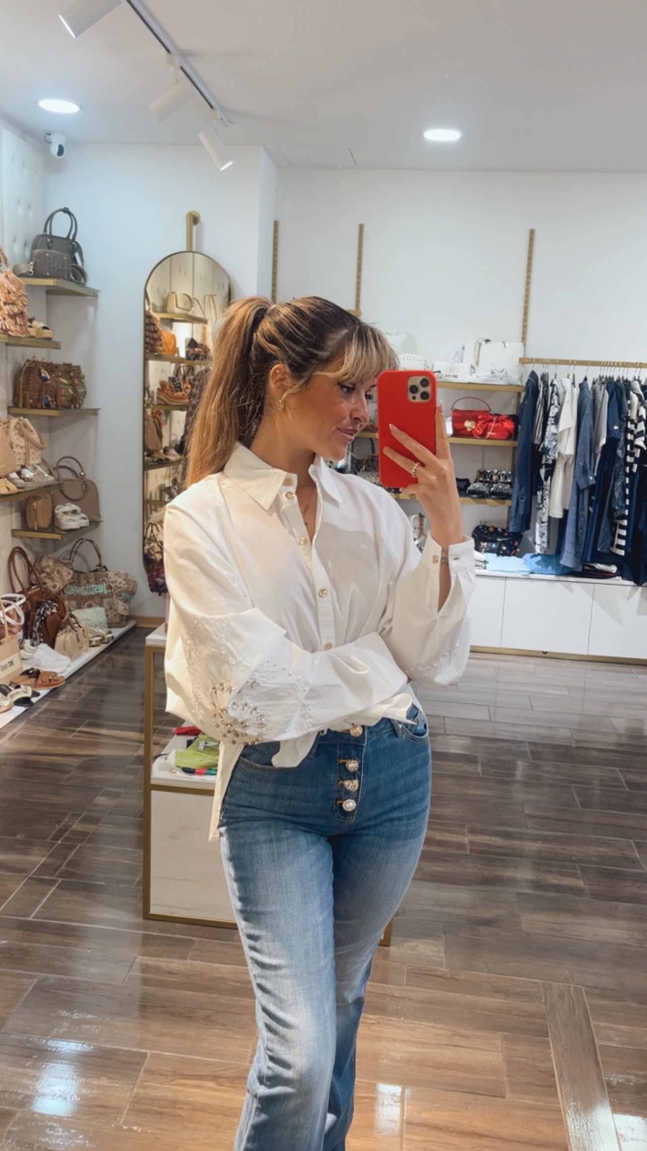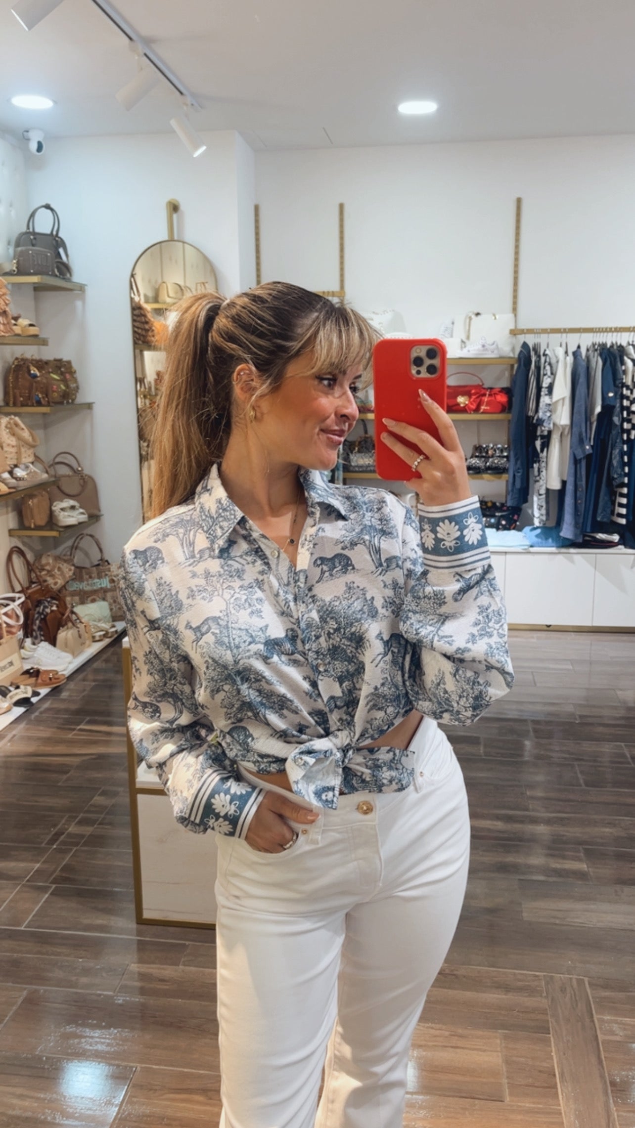 MICHELLA high-waisted wide leg trousers - sky blue melange