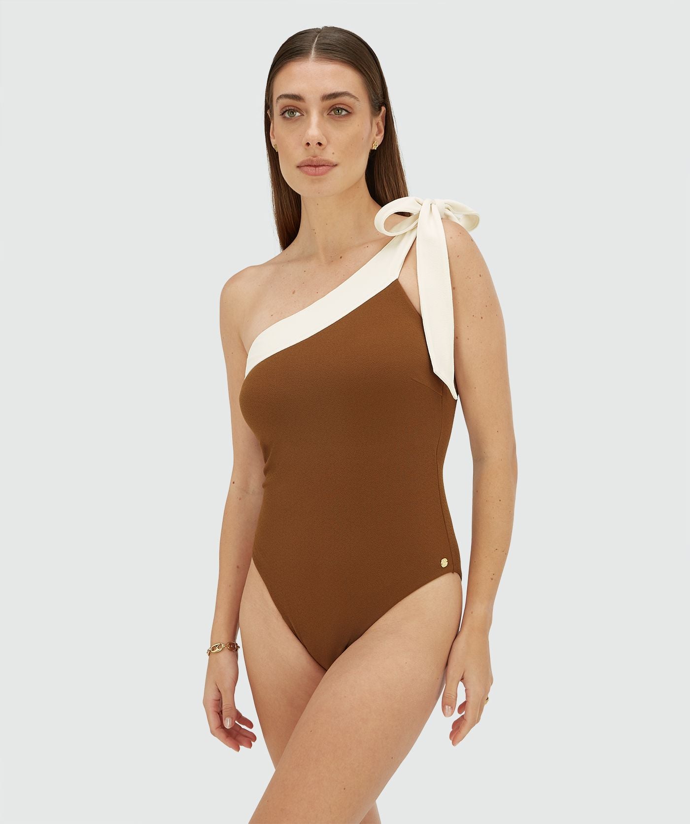 AZINE swimsuit with tie strap - brown ecru