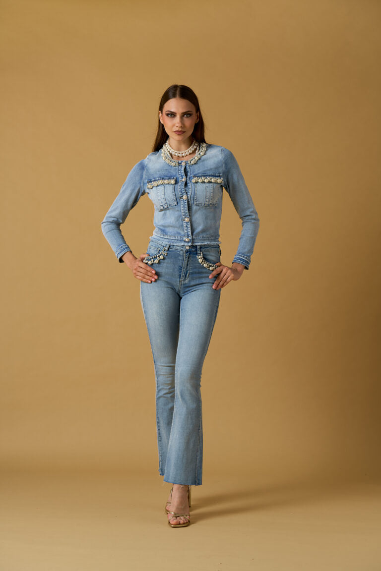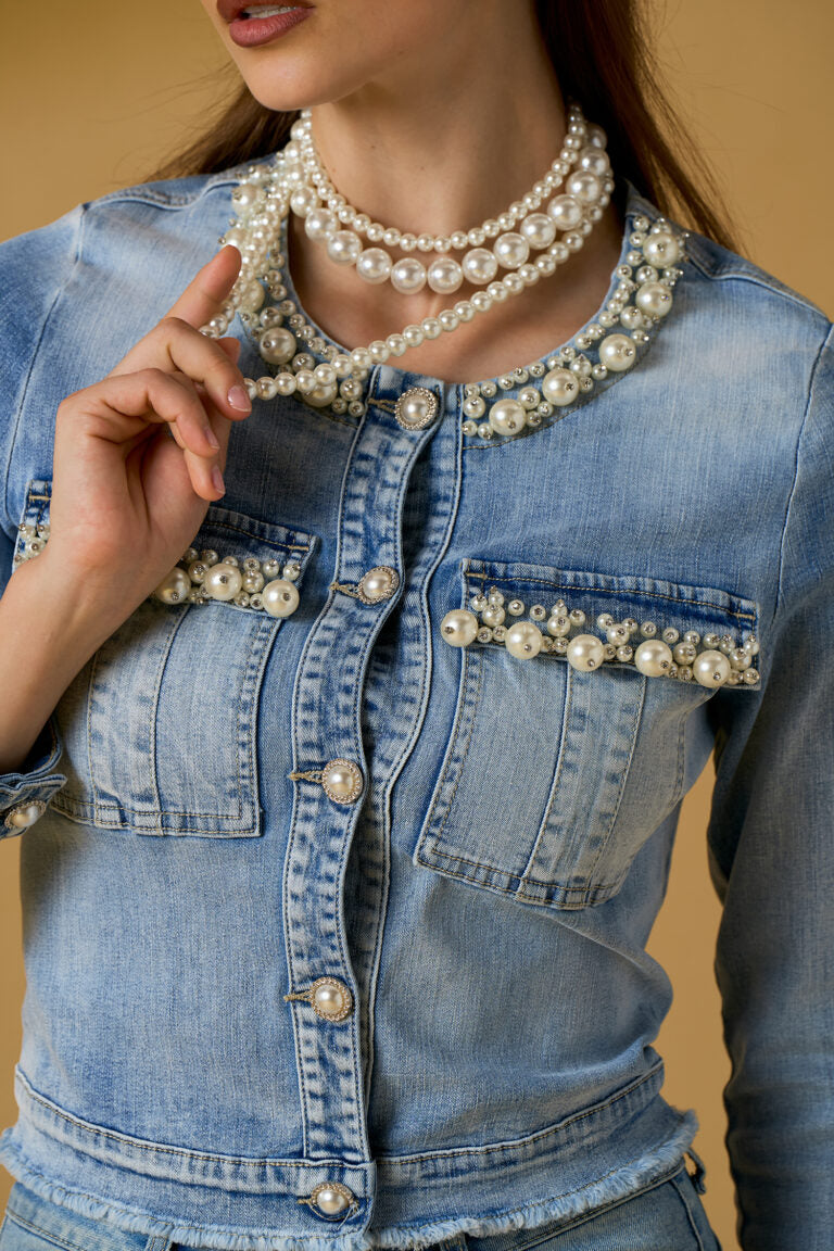 Denim Jacket with Pearl Embroidery