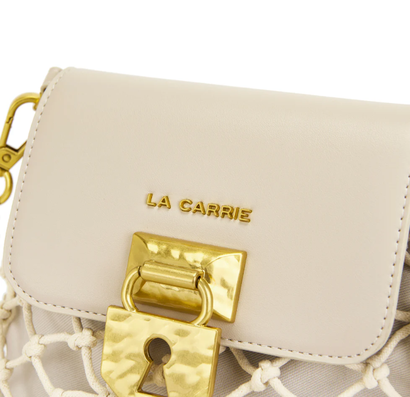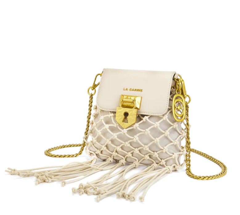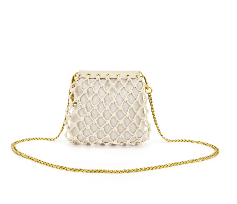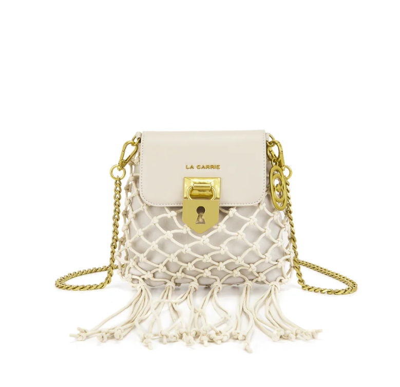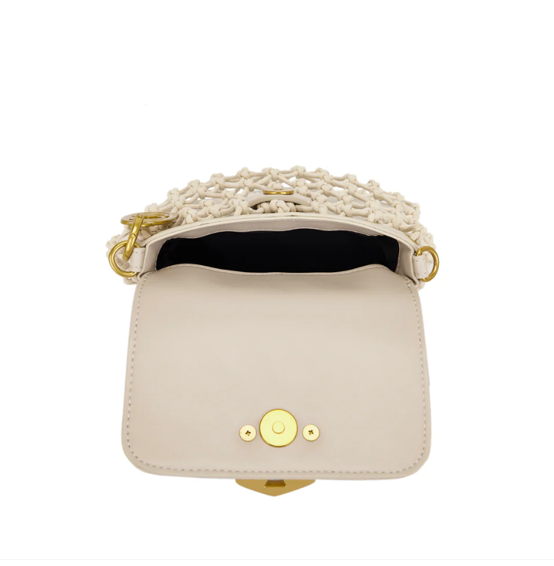 Small messenger bag in braided rope with fringes, removable shoulder strap
