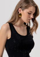 Knitted tank top slim fit. Round neck and with shiny strasses