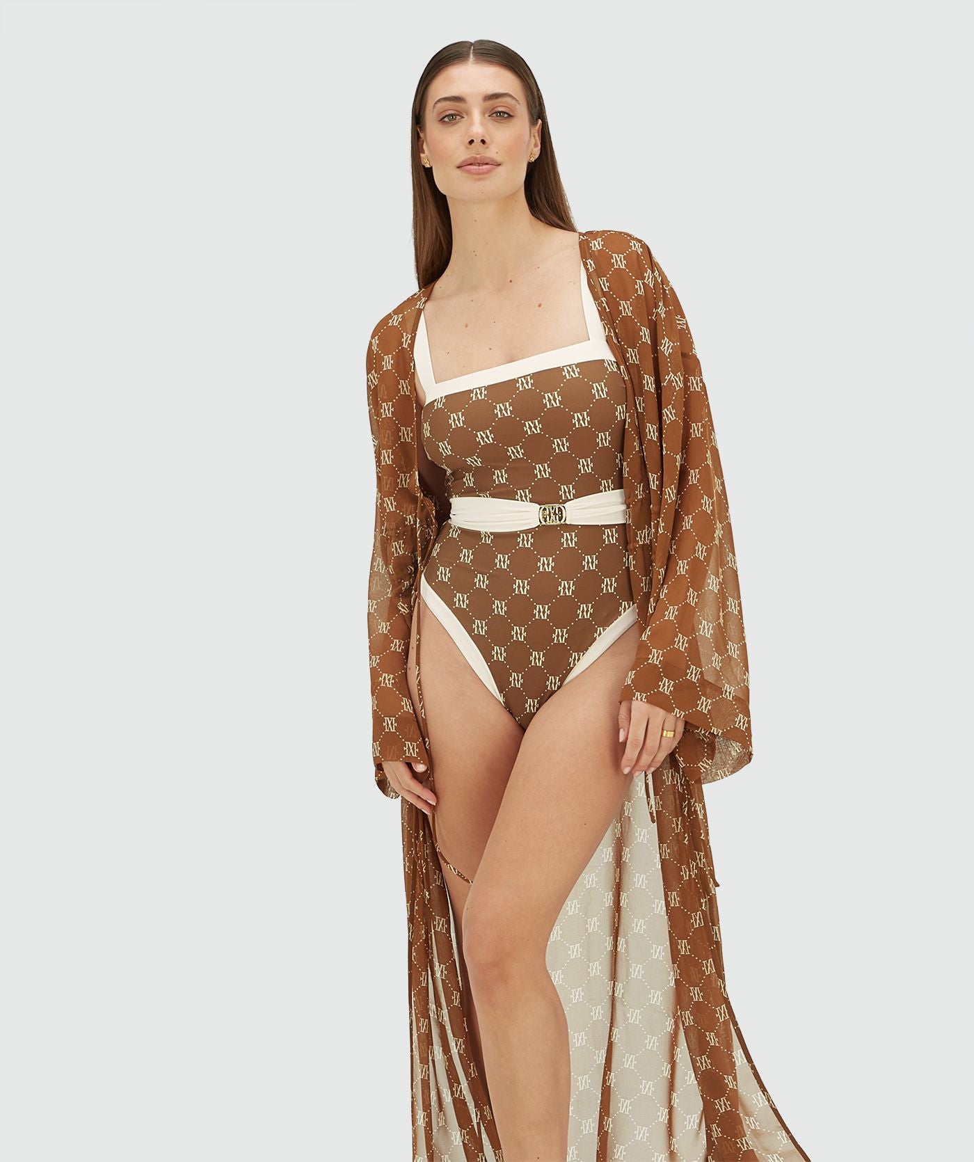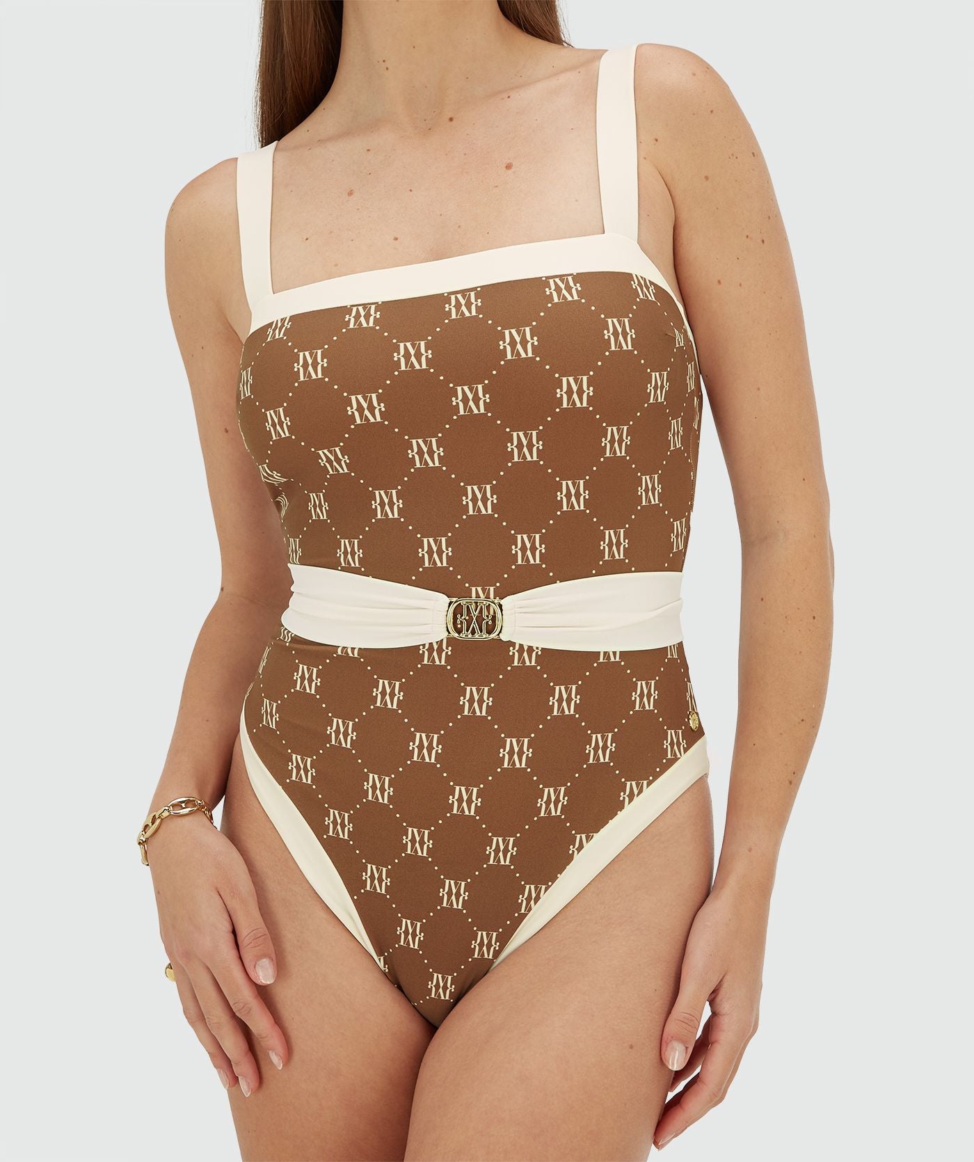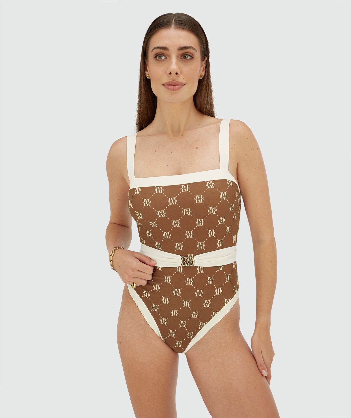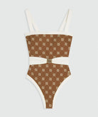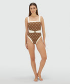 MILA swimsuit with belt - brown ecru