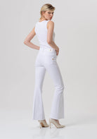 Pant bootcut made in stretch bull denim. Regular waist, 5 pockets and wide bottom leg