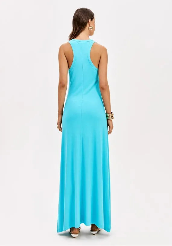Vestido Malha Canelada Super Midi Evasê