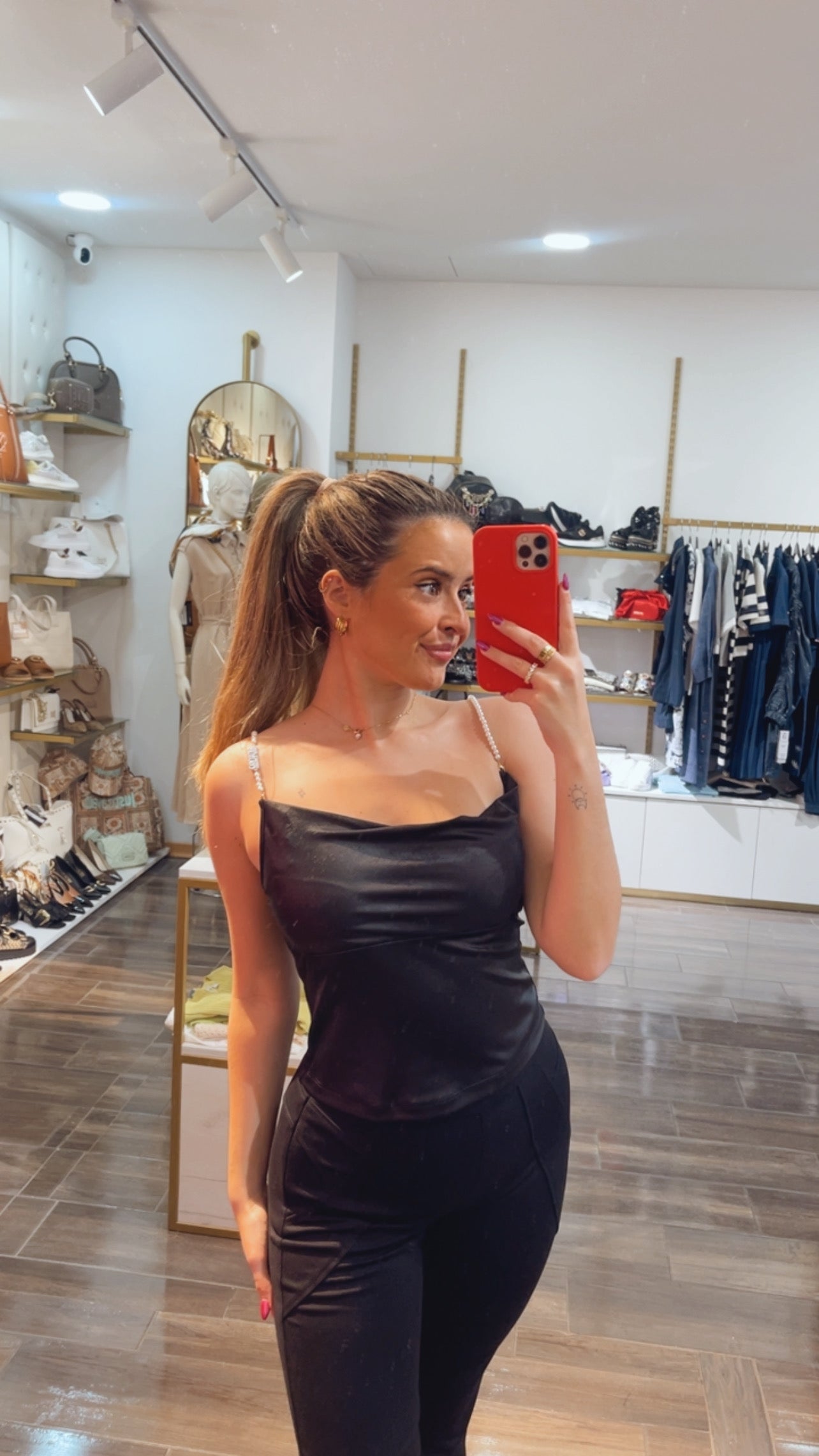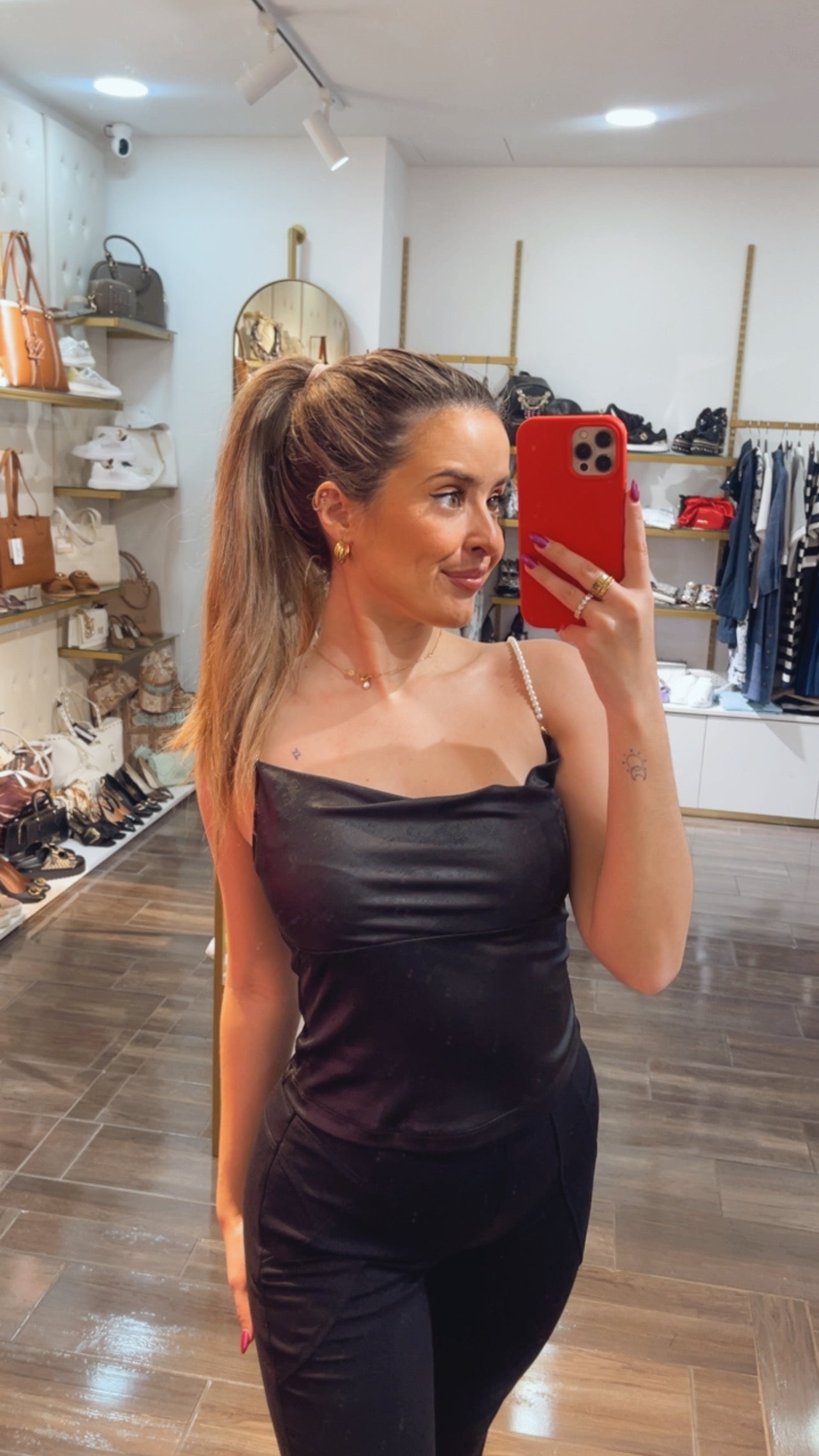 Black top with shiny strap