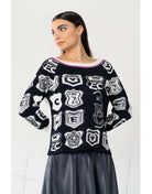 Very pretty little knitted sweater with coat of arms patterns, in contrasting colors.