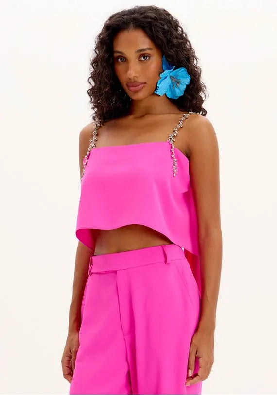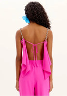 Blusa Curta De Alças Metalizadas Com Amarração Nas Costas