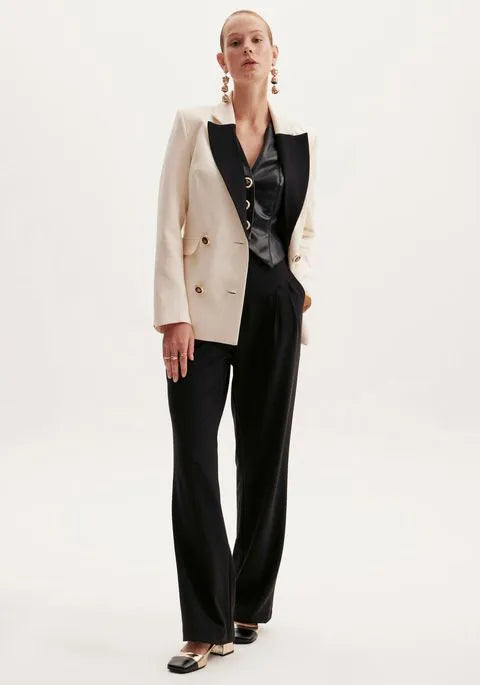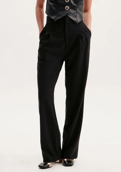 Calça reta preta cintura alta