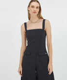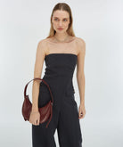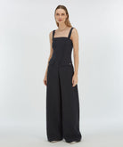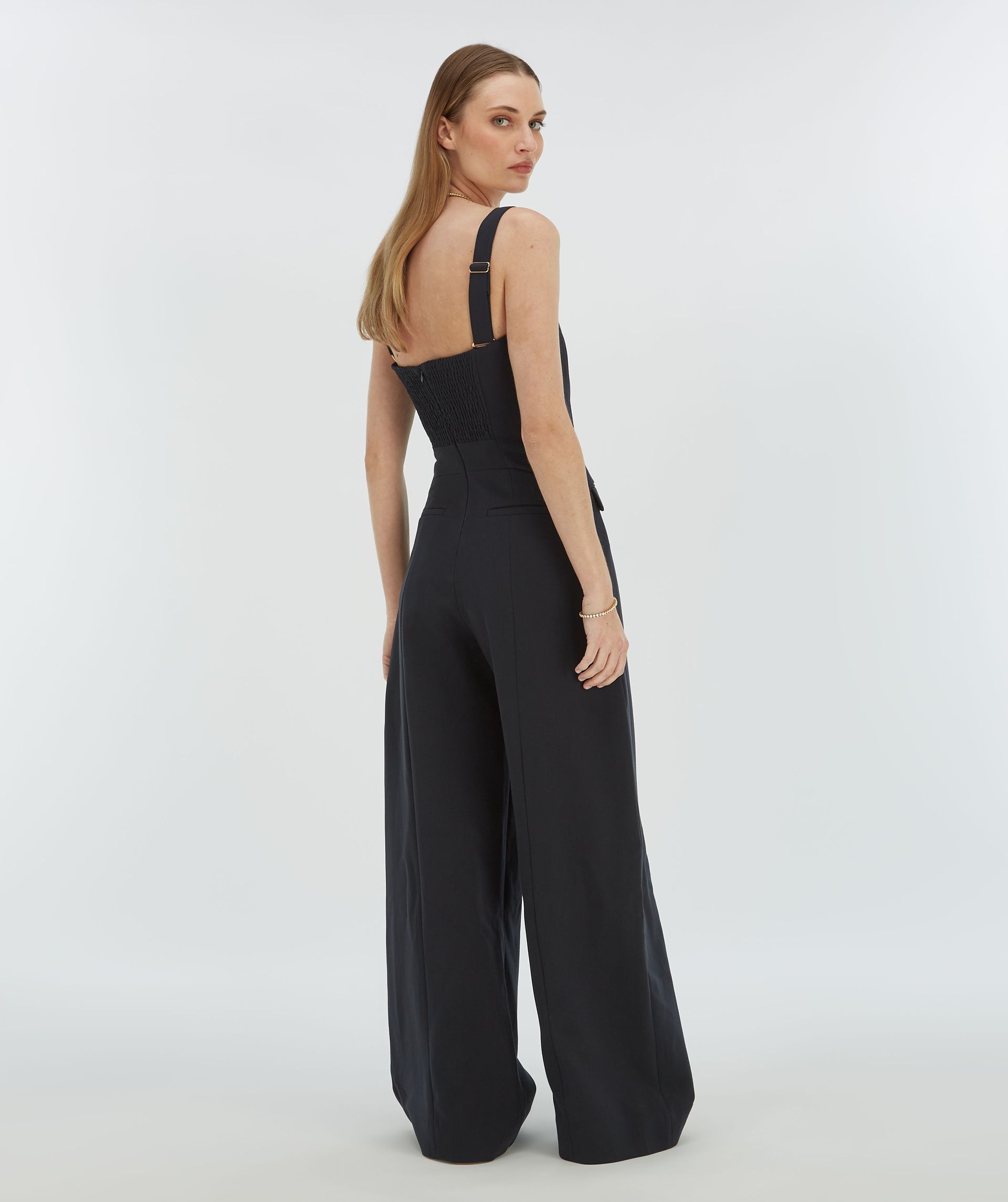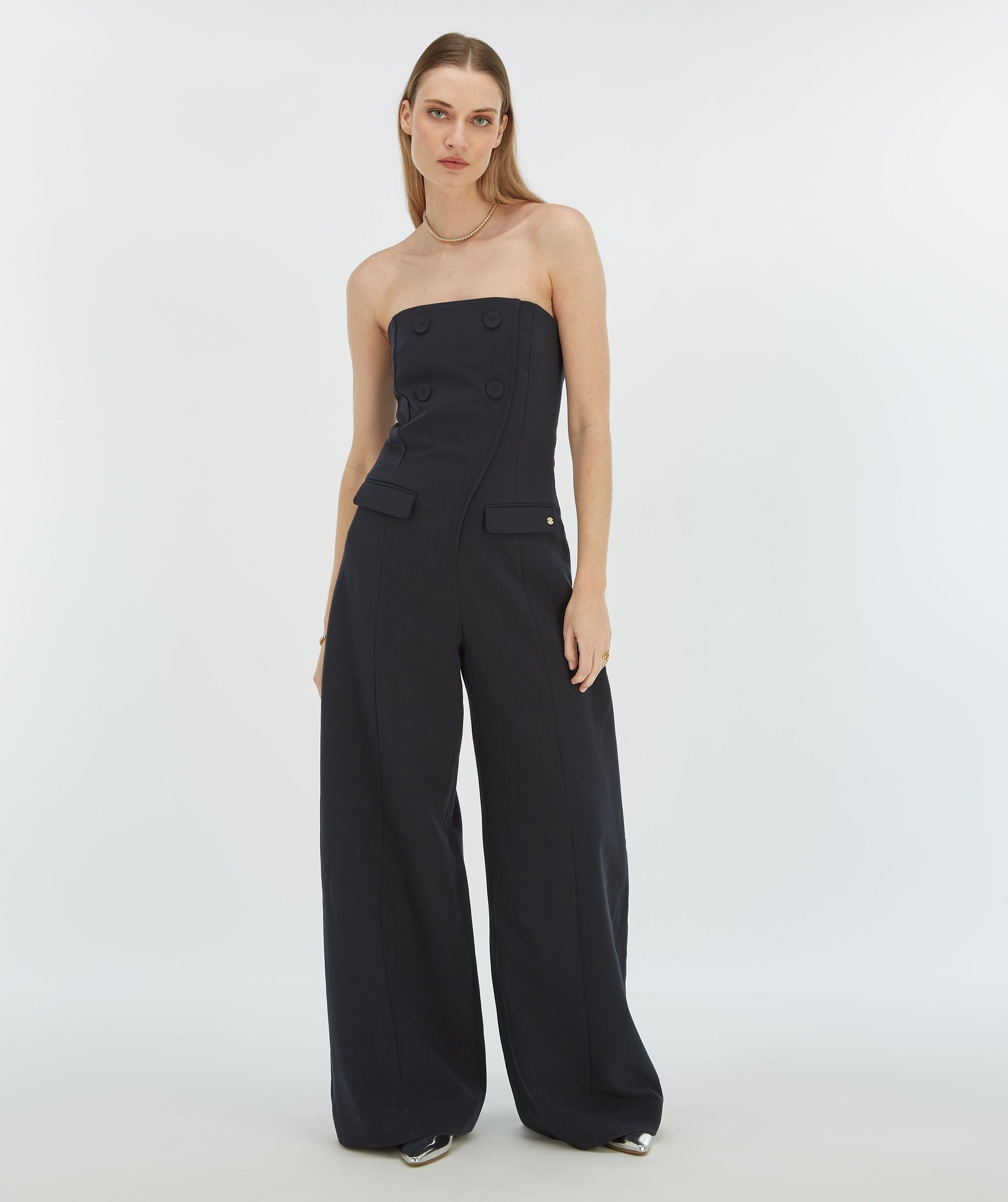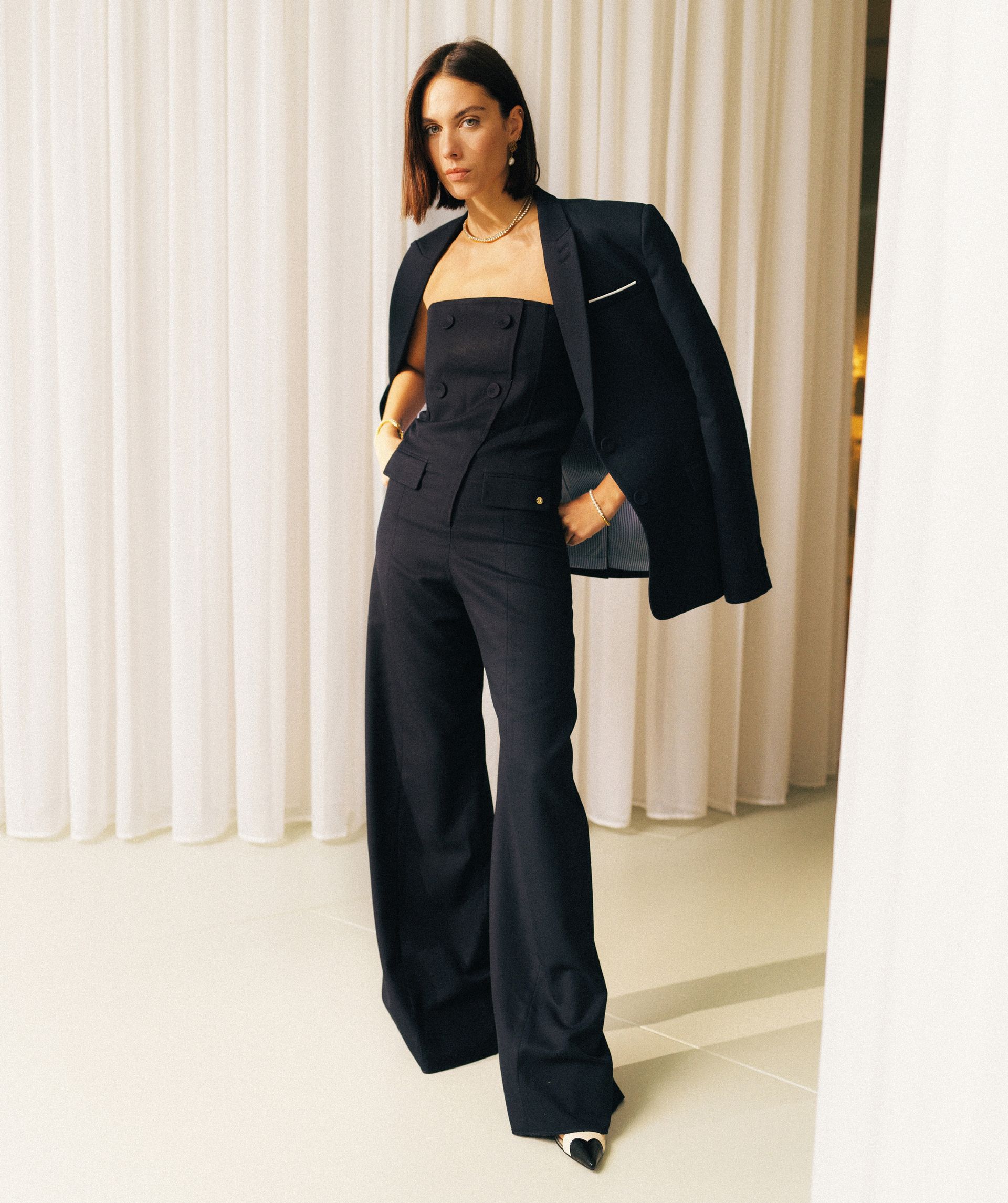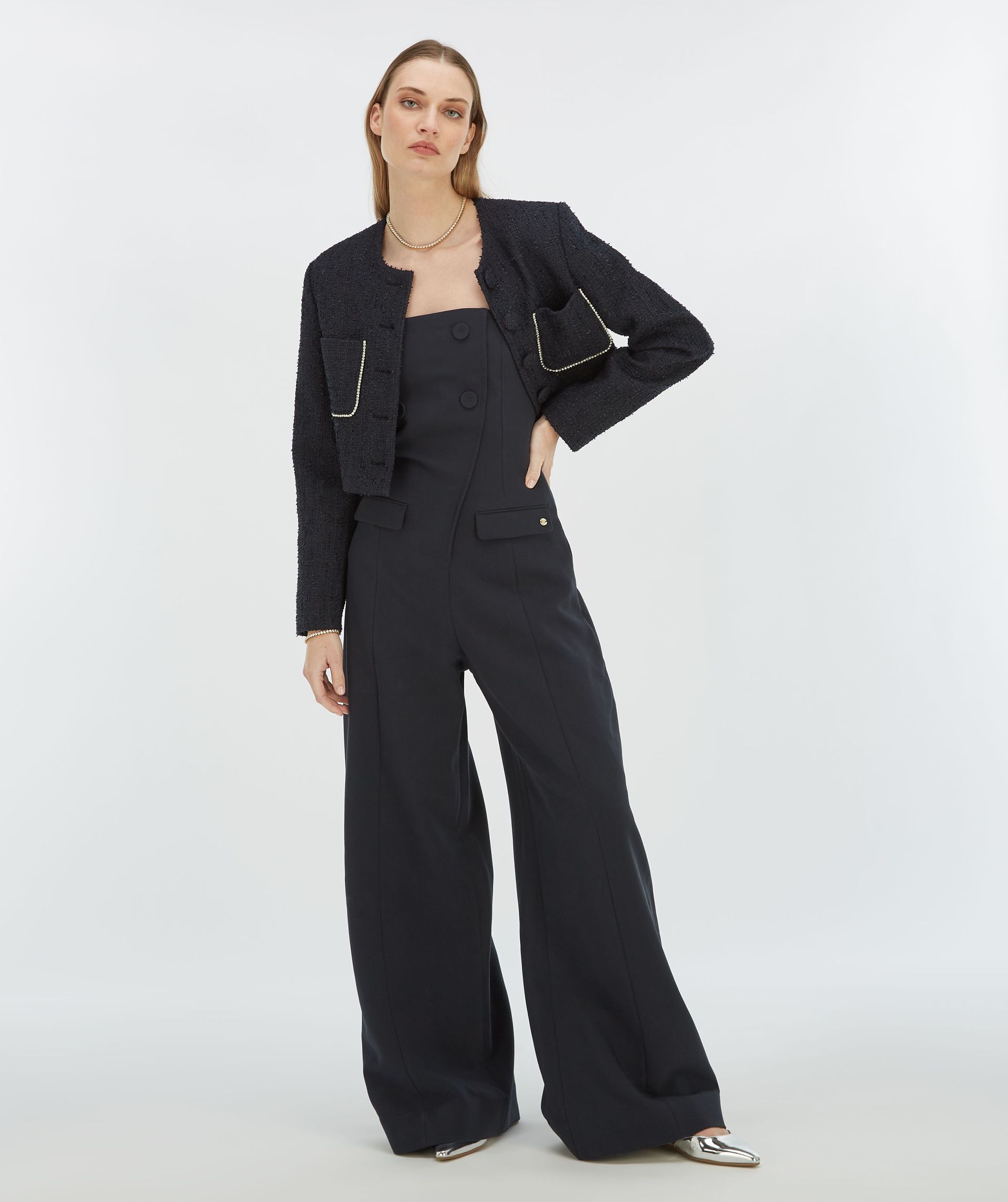 Looking for an elegant and timeless jumpsuit? The JOSH V Chana women’s jumpsuit in the color Dark Navy is the perfect choice. The dark blue jumpsuit is made from a comfortable fabric with recycled polyester and stretch. This wide-leg jumpsuit can be worn strapless thanks to the detachable shoulder straps. Additionally, the straps are adjustable. The top fits beautifully, and the legs flare into wide legs. If needed, the jumpsuit can be lengthened with the extendable hem. Wear the jumpsuit with a blouse and sneakers for a casual look or strapless with heels for an evening out.