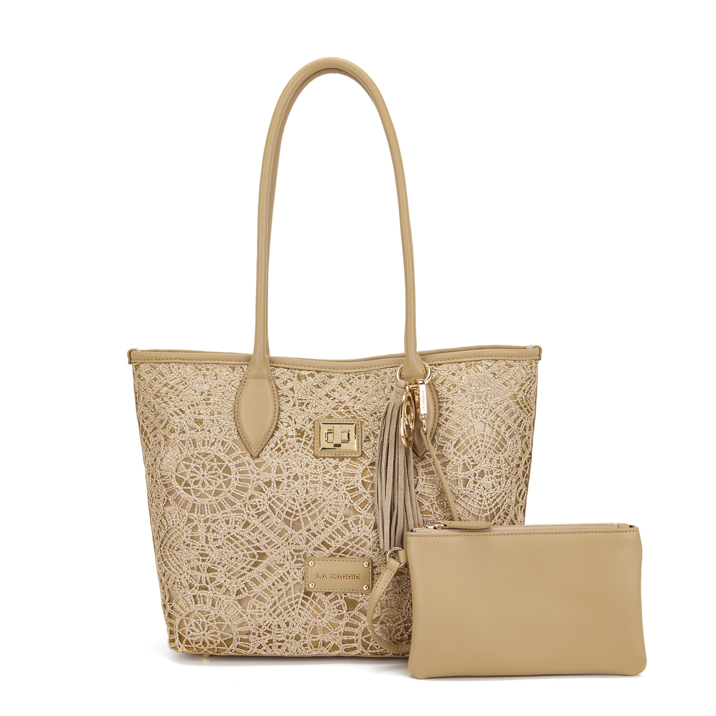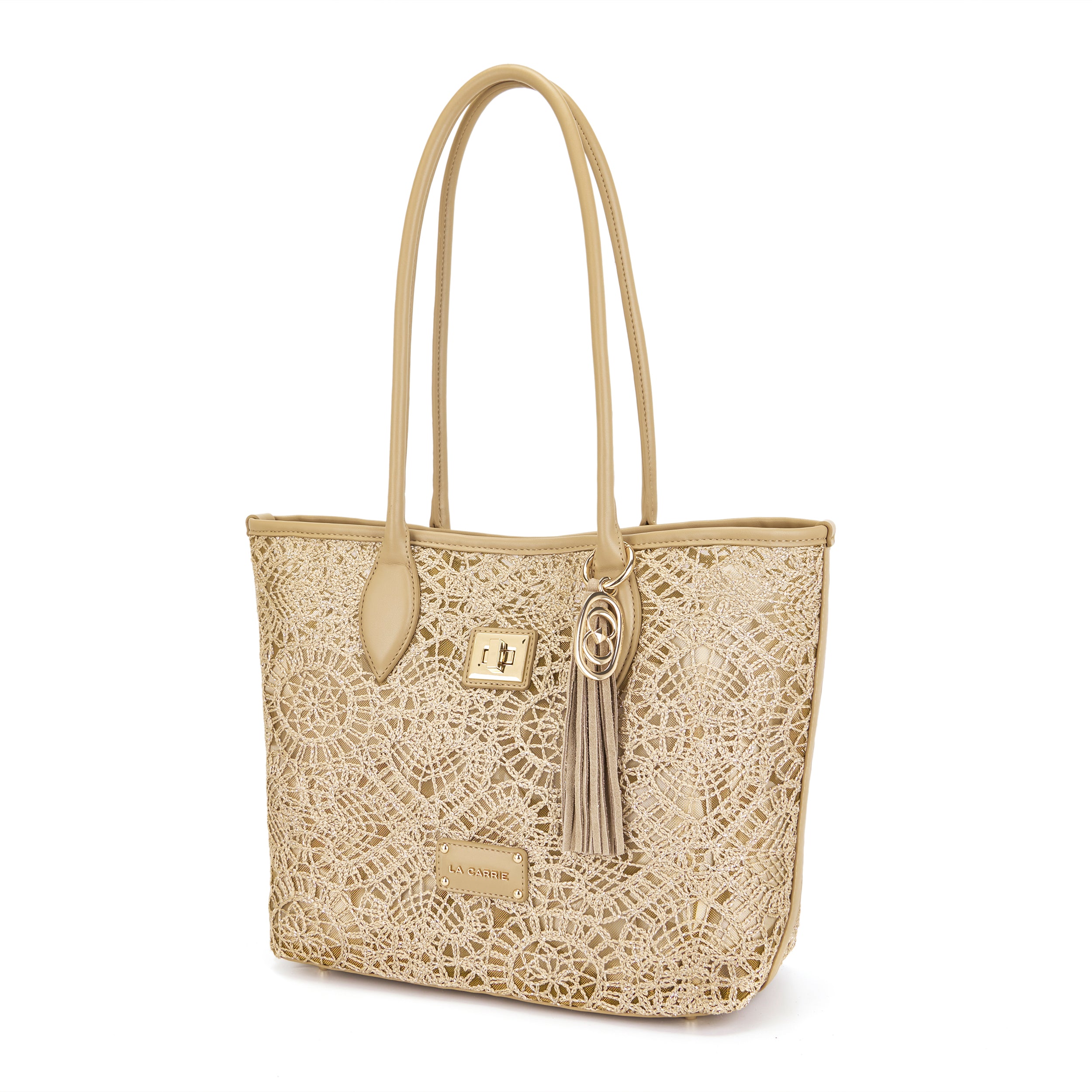 Shopping bag with woven embroidery, two handles