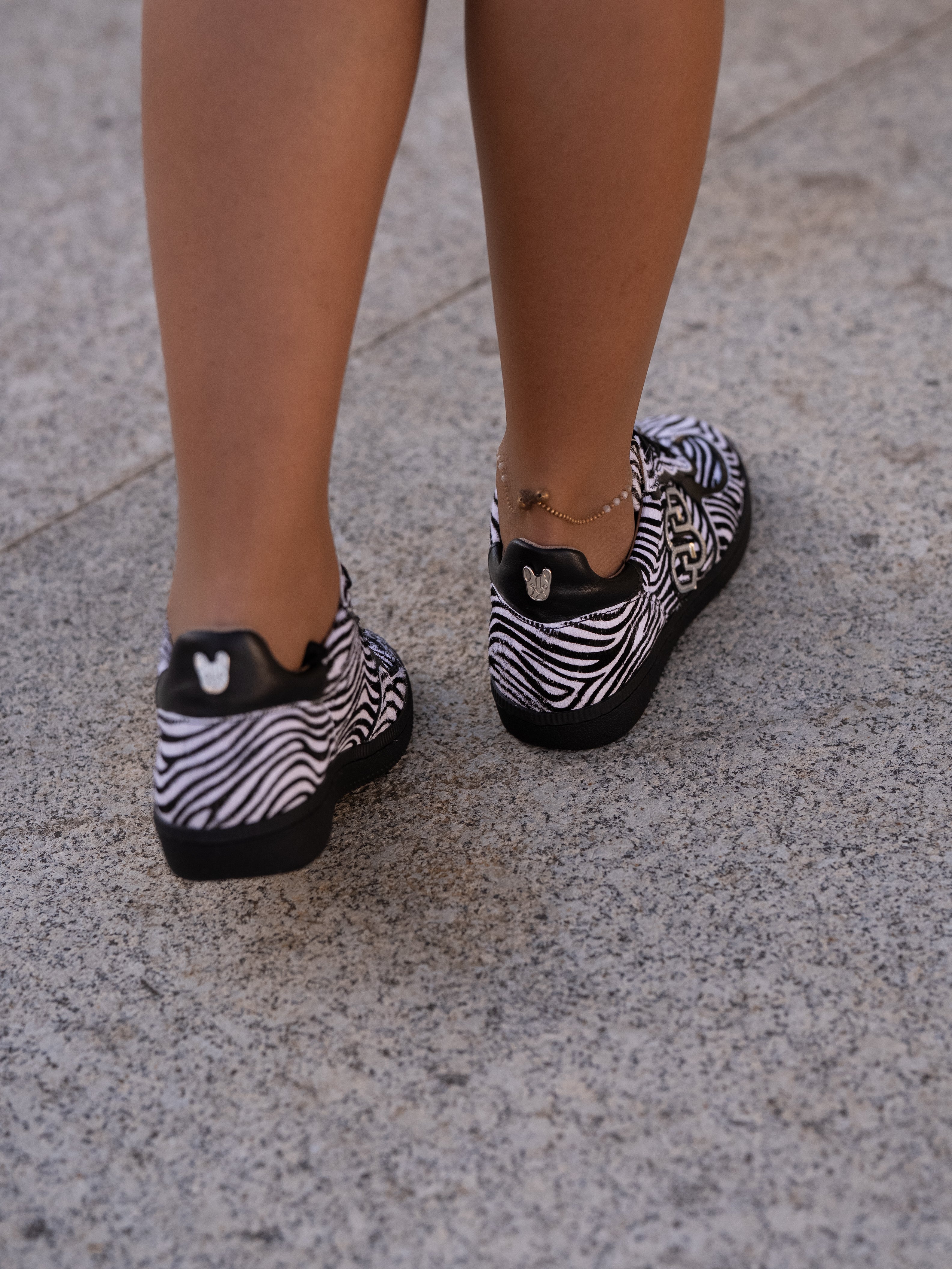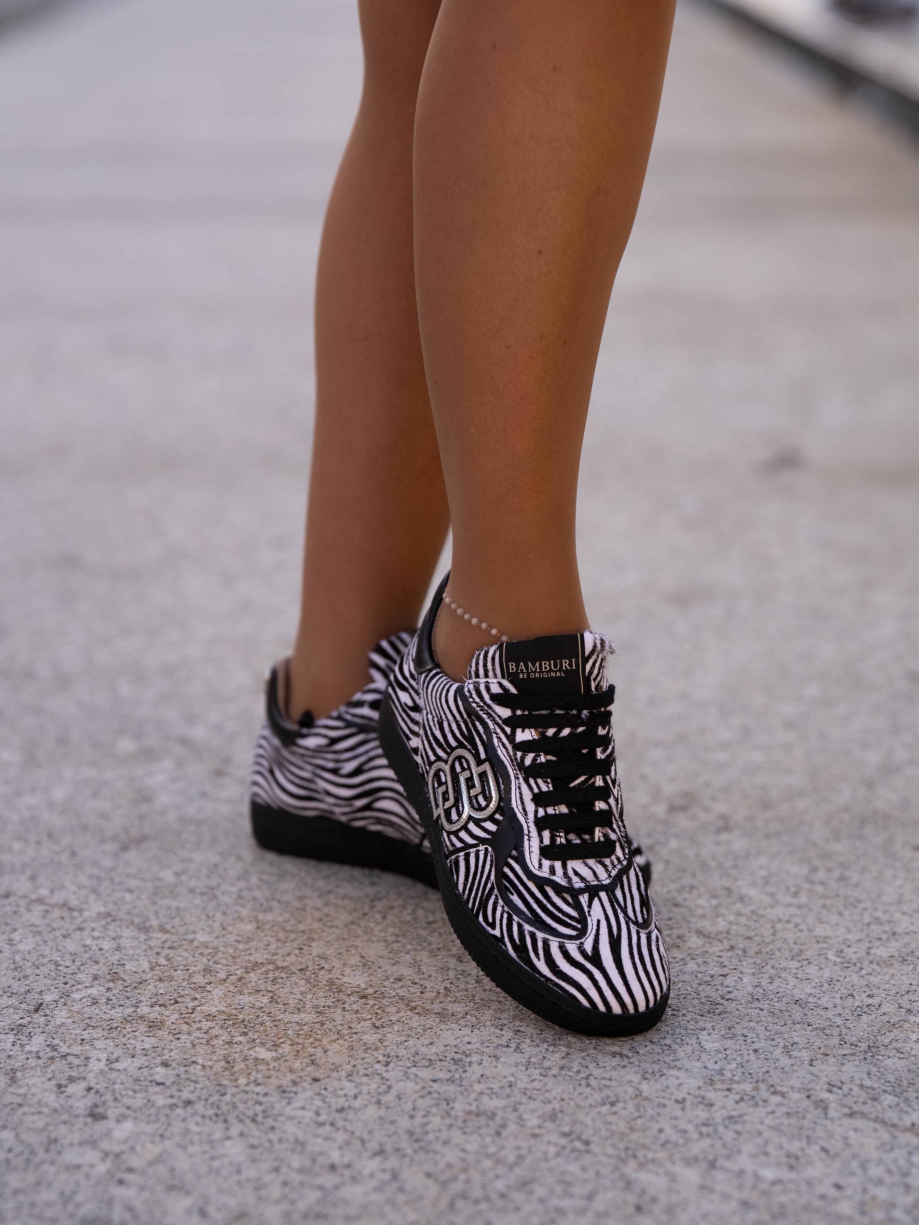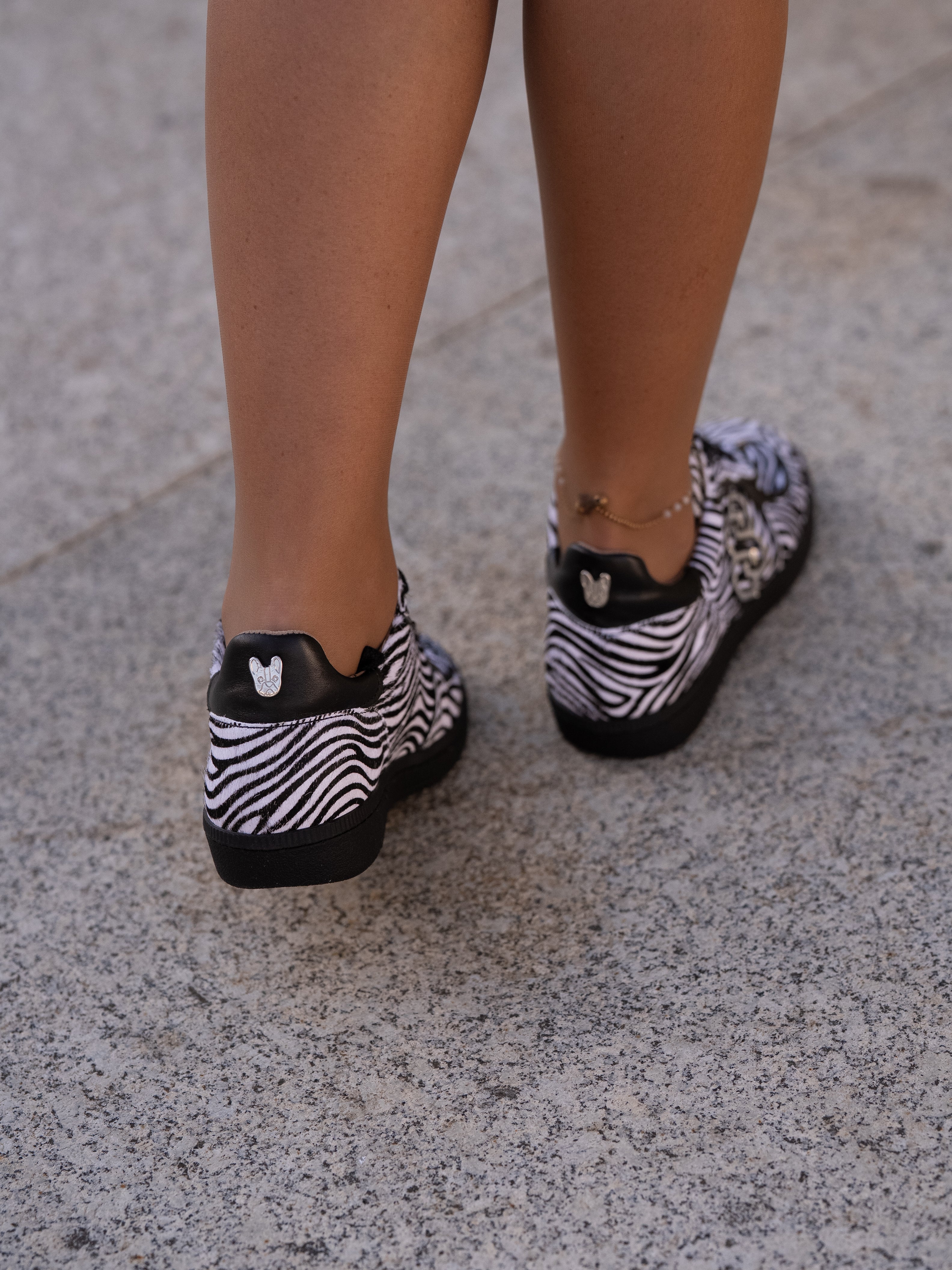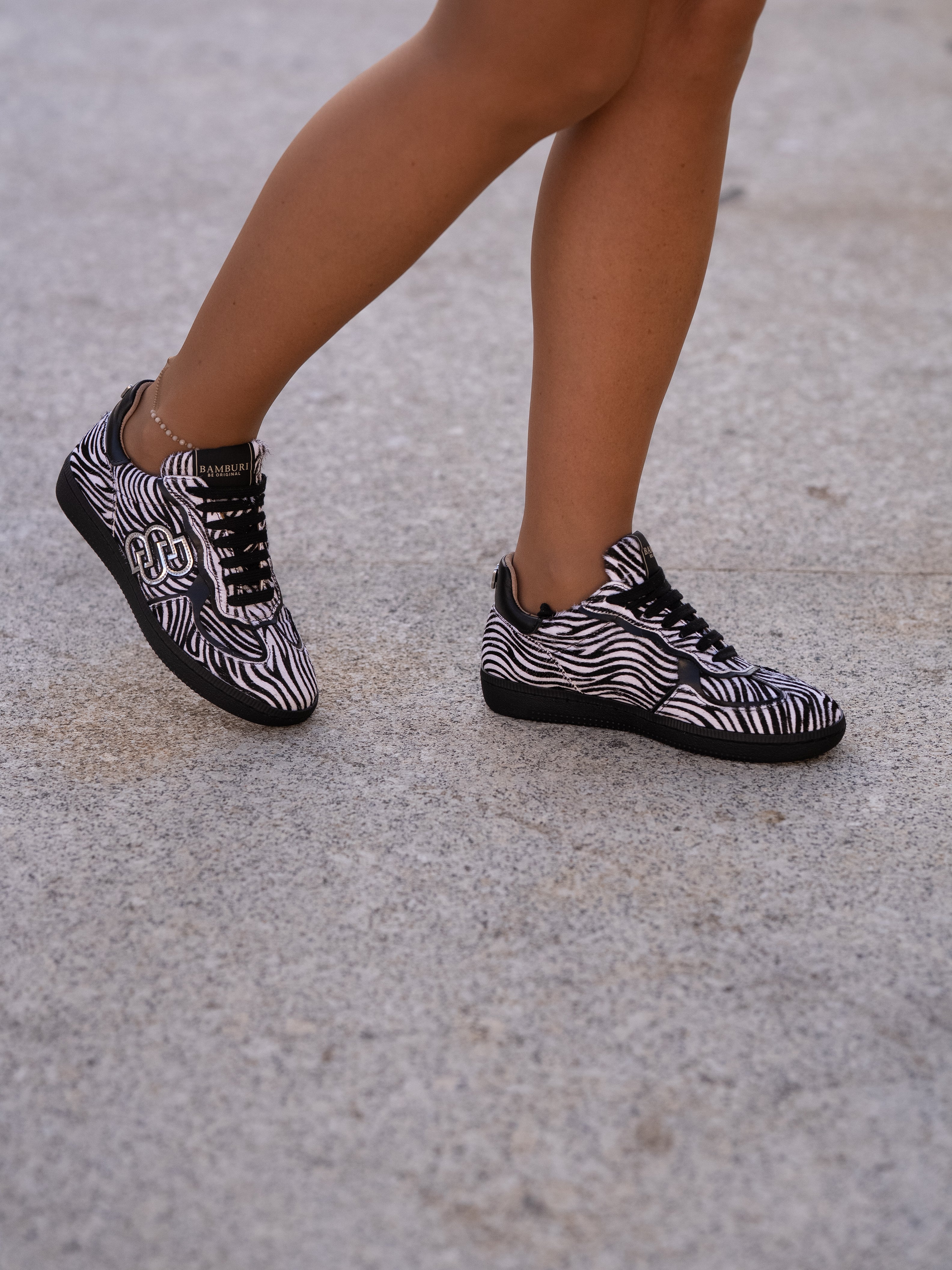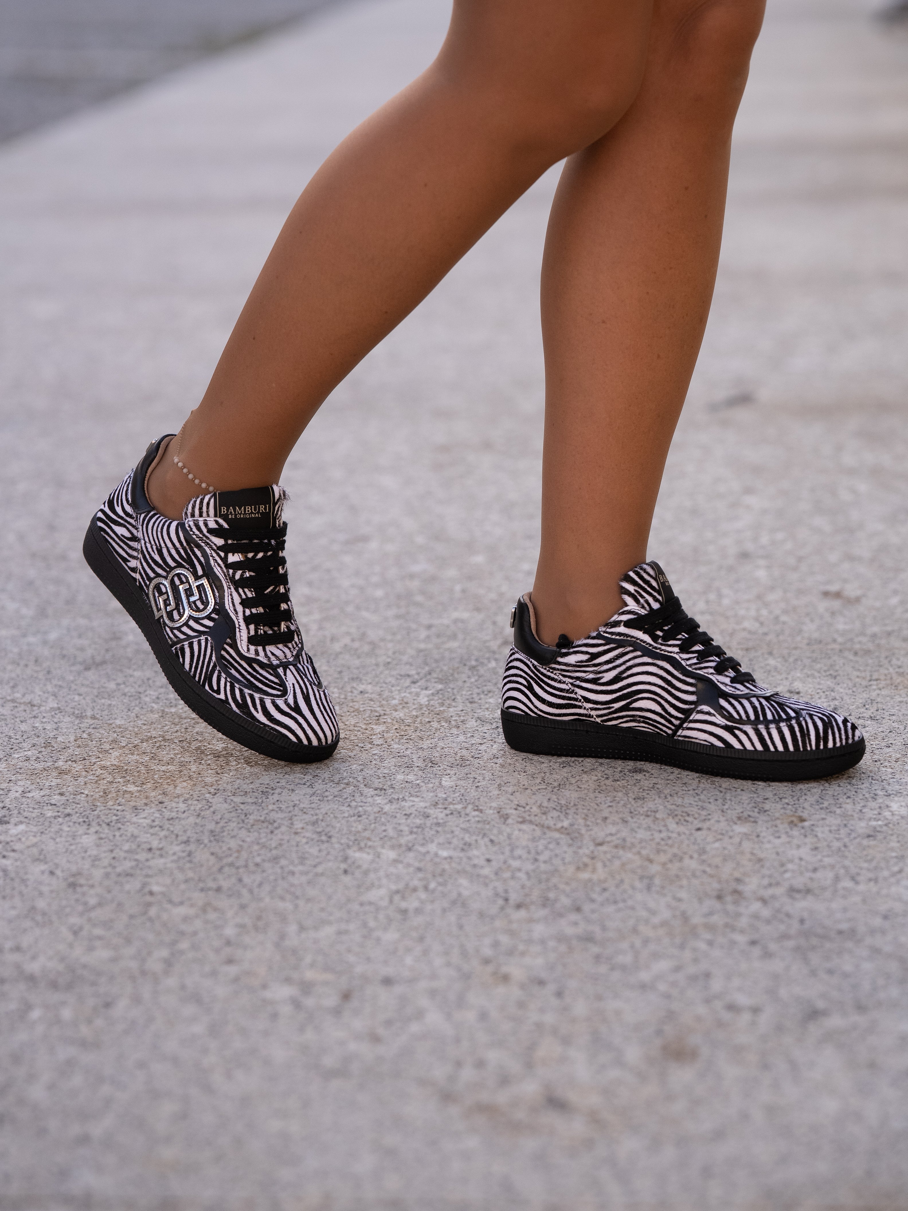 Stand out with these handcrafted low-top sneakers made from genuine zebra-print pony hair. Featuring a black rubber sole, smooth leather accents, and our iconic BB monogram embroidered on the sides. The back is finished with our signature metal dog emblem. Fully leather-lined for comfort and durability.