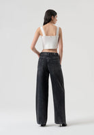 Palazzo pant wide fit made in black denim with dark wash and strasses