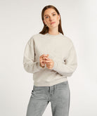 Are you in search of a comfortable and trendy sweater? Then the JOSH V Lenthe women's sweater in Salt Melange is the right choice for you. This light grey sweater is made of 100% cotton, sourced via Better Cotton, and features a regular fit. The JV logo application with a frayed effect gives the grey sweater a unique look. Pair the sweater with jeans and sneakers or with a skirt and high boots for versatile looks.