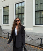 A must-have! The black Nick blazer from JOSH V is an oversized boyfriend blazer, inspired by the men’s blazer of Nick (Josh’s partner). The blazer is enhanced with shoulder pads, flap pockets, and refined details such as JOSH V branded buttons. Thanks to the special tailoring—identical to real men’s blazers—the blazer has a powerful and structured look. Perfectly styled with jeans and loafers for a sophisticated outfit